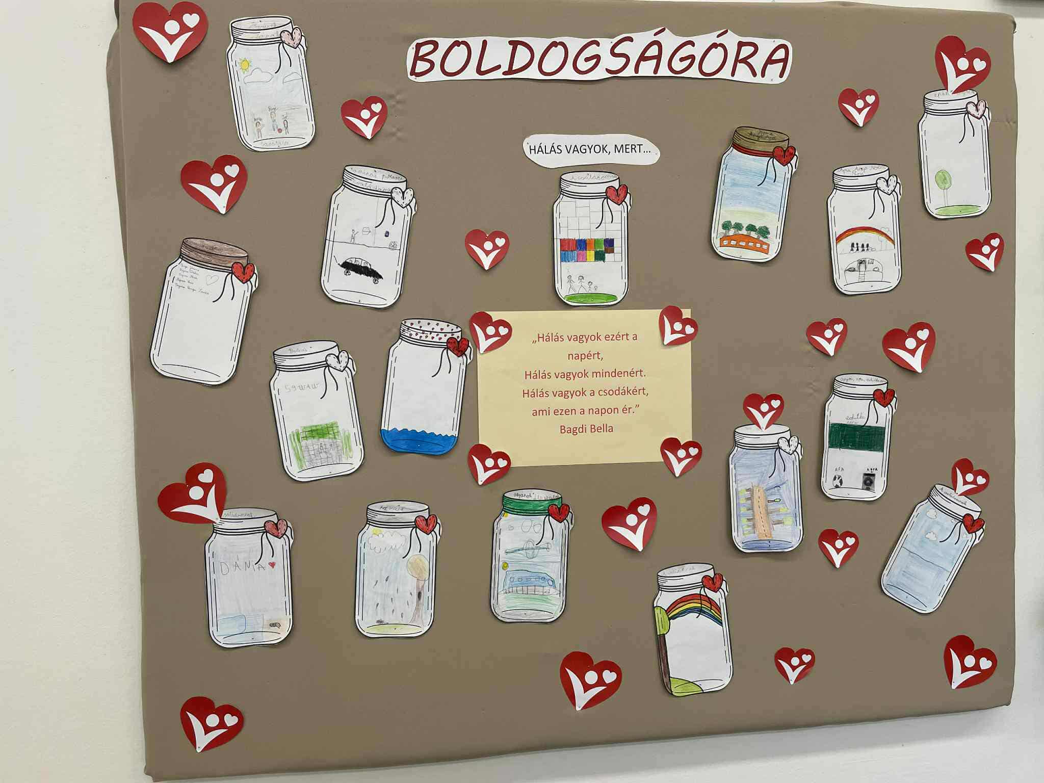 Iskolánk büszkén viseli az „Örökös Boldog Iskola” címet, és immár hagyománnyá vált, hogy a tanév során kiemelt figyelmet fordítunk azokra az érzelmi és szociális kompetenciákat fejlesztő témákra, amelyek segítik tanulóink jól-létét. A tanév első témája – a hála – már meg is jelent a diákok munkáiban, gondolataikban, és az osztályfoglalkozások során készült alkotásokban, a szülők is hálás gondolatokkal indították a tanévet.