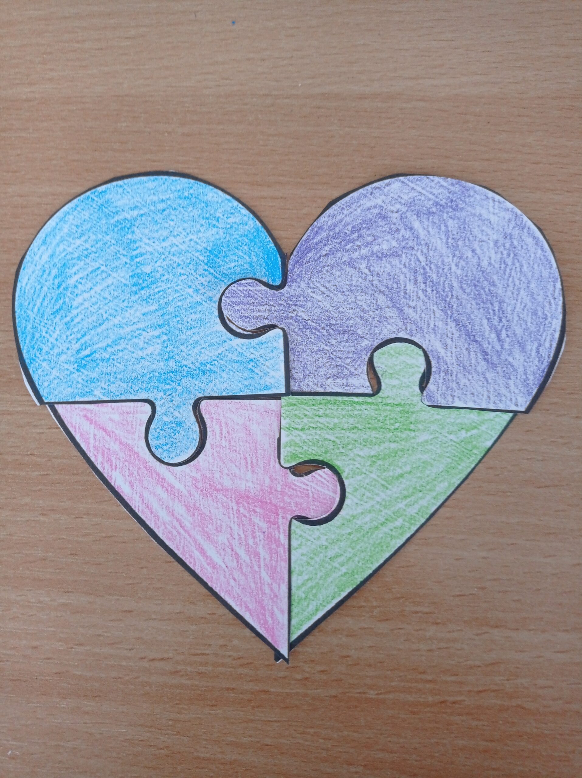 Amikor a dobozkából elfogytak a falapocskák és a matricák, legalul a gyerekek kis puzzle darabokat találtak. Mindenki kiszínezett egyet, majd összeillesztették. Közben elmondták egymásnak, melyik játékot játsszák legszívesebben egymással.