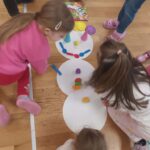 Célunk az volt, hogy az óvodások önfeledten élvezzék a szabad játékot a nagy hóban. A mókázás után, a csoportszobában kreatív hóembereket készítettünk: pl. óvodai játékeszközök segítségével, WC papír gurigákat is újrahasznosítottunk, végül pedig mindenki „megépítette” a saját hóemberét.