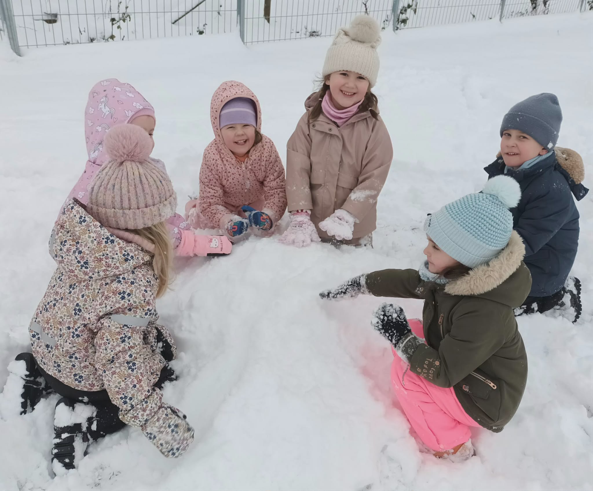 Az időjárásnak köszönhetően az óvoda udvarán a gyermekek vidám hócsatázásba kezdtek. Voltak olyanok is, akik megpróbálkoztak hóembert építeni. A gyermekek számára a hóember több, mint hógolyók halmaza egy „új barát”, akinek saját arca és karaktere lesz.
