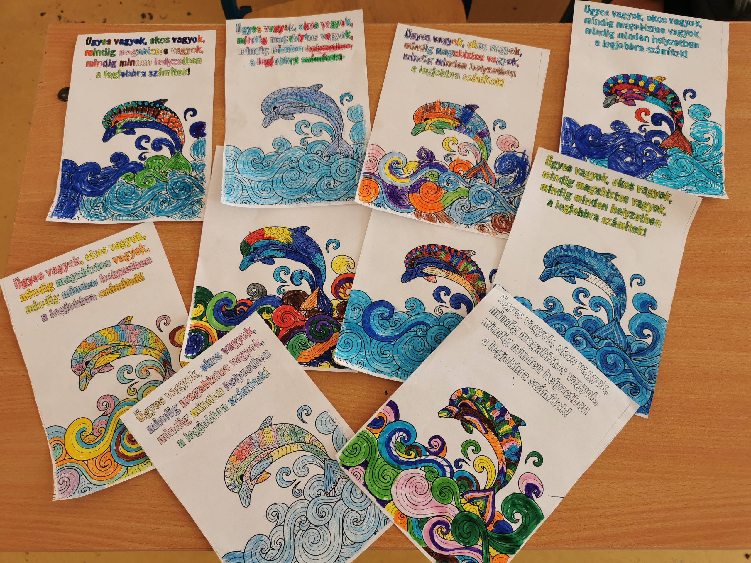 Az utolsó óránk sem maradhatott el a hónap dala nélkül. Közös rajzot is készítettek. Egyesével egészítették ki a rajzot a fantáziájuknak megfelelően. Önbizalomnövelő delfint is színeztek a gyerekek. Természetesen kibogoztuk mit is jelenthet a fenntartható boldogság is.