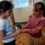 A novemberi boldogságóra során a „Társas kapcsolatok ápolása” volt a témánk. A foglalkozáson körbejártuk, miért is lényeges, hogy embertársainkkal, mikro- és makro környezetünkkel harmonikus kapcsolatot alakítsunk ki. A téma fontos elemének tartottam, hogy a gyerekek játékos formában megfogalmazzanak olyan állításokat, melyek társaik pozitív tulajdonságait emelik ki. Ennek célja a kapcsolati rendszer erősítése volt. Ehhez a tanulók kis kört alkottak, és a mellettük állóhoz fordulva mondtak dicsérő szavakat a másiknak, eszközként egy plüss kutyust adtak körbe. Ilyen mondatok hangzottak el például: