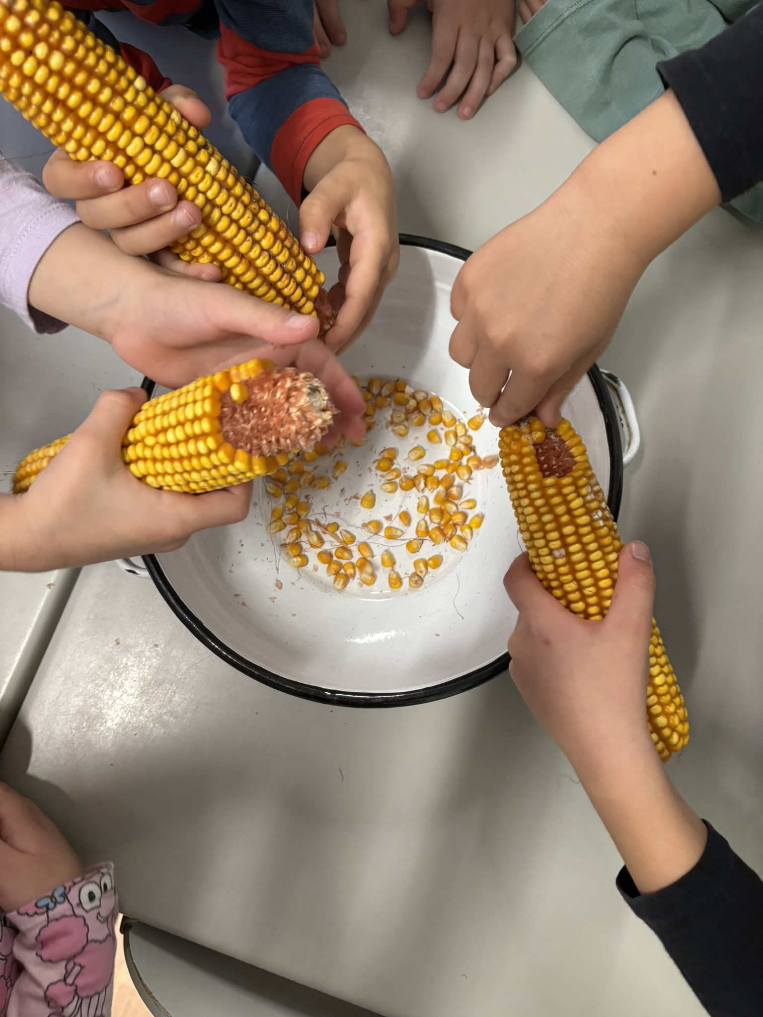 Kukoricát morzsoltunk, András napjához közeledve sok-sok malacos mondókával, népi játékkal disznóvágás hagyományát játszottuk el, majd hurkát, kolbászt sütöttünk, s jót mulatva fogyasztottuk el.