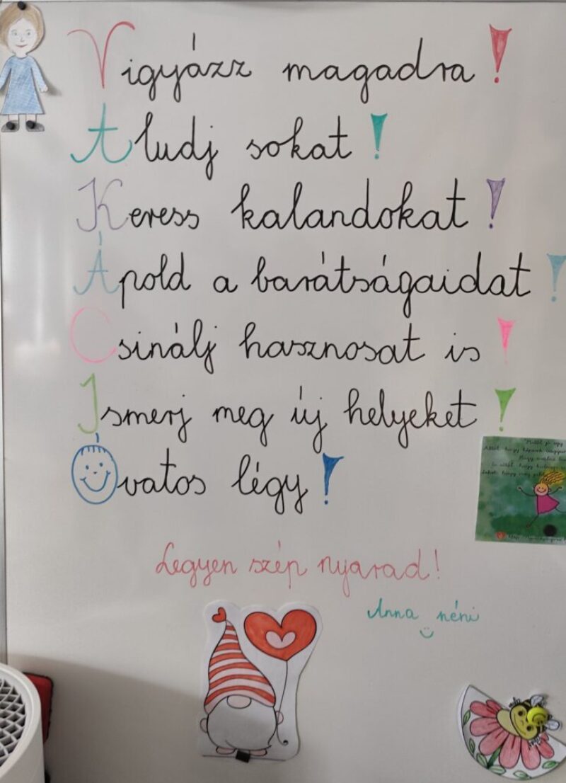 Az osztállyal az alsó tagozatos évek, a 4. osztály végéhez érkeztünk. Közösen emlékeztünk az elmúlt évek boldogságóráira: a közösen készített alkotásokra, dalokra, táncokra. Nagyon szerették a gyerekek a boldogságórás foglalkozásokat.