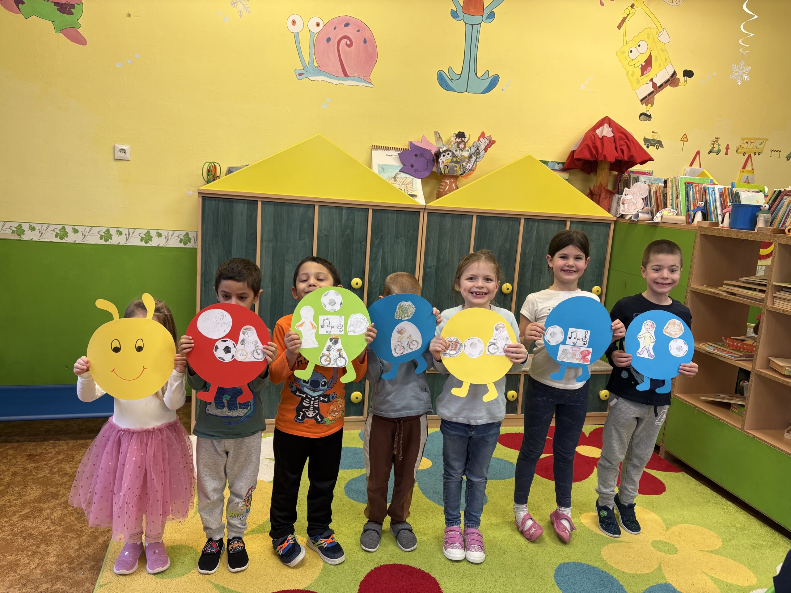 Januárban a célok elérése a témánk. Mivel közeledik az iskolaérettség megállapításának időszaka ezért a nagyok a céljaik megfogalmazását rajzokban fejezték ki. Mit kell tudni egy iskolaérett gyereknek? Biciklizni, cipőt kötni, labdát pattogtatni, mesélni és még sok sok mindent. A Boldogság órán mindenki egy Kukac testbe ragasztotta azt a képet amit célként el szeretnének érni. A kukac a csoport szobát díszíti amire ha ránéznek eszükbe kell jusson mi a céljuk!