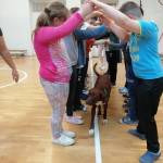 Az utolsó „Kullogó” foglalkozást Dió, a terápiás kutya segítette gazdájával: Koller Rita gyógypedagógussal. Az állat jelenléte egy foglalkozáson mindig hatalmas élmény. Közelsége minden emberben jó érzéseket kelt. Figyeltem az arcokat. Felnőttekét, gyerekekét egyaránt. Mosoly, szelídség, kedvesség. A foglalkozásra csapatépítő játékokat tervezett Rita. A 2. és 3. osztály, valamint pedagógusaik, segítőik vettek részt.A rendkívül fegyelmezett, engedelmes, jól képzett Dió megmutatta a gyerekeknek, hogy viselkedjenek. Szavak nélkül fegyelmezett. A nonverbális kommunikáció hatékonyabbnak bizonyult, minden más módszernél. A relaxációs feladat, a foglalkozás végén a kutya fülébe súgott szavak mind-mind arról tanúskodnak, hogy remek hangulatú, tartalmas, szakmailag kiválóan felépített foglalkozáson vehettünk részt. Hálásan köszönjük!