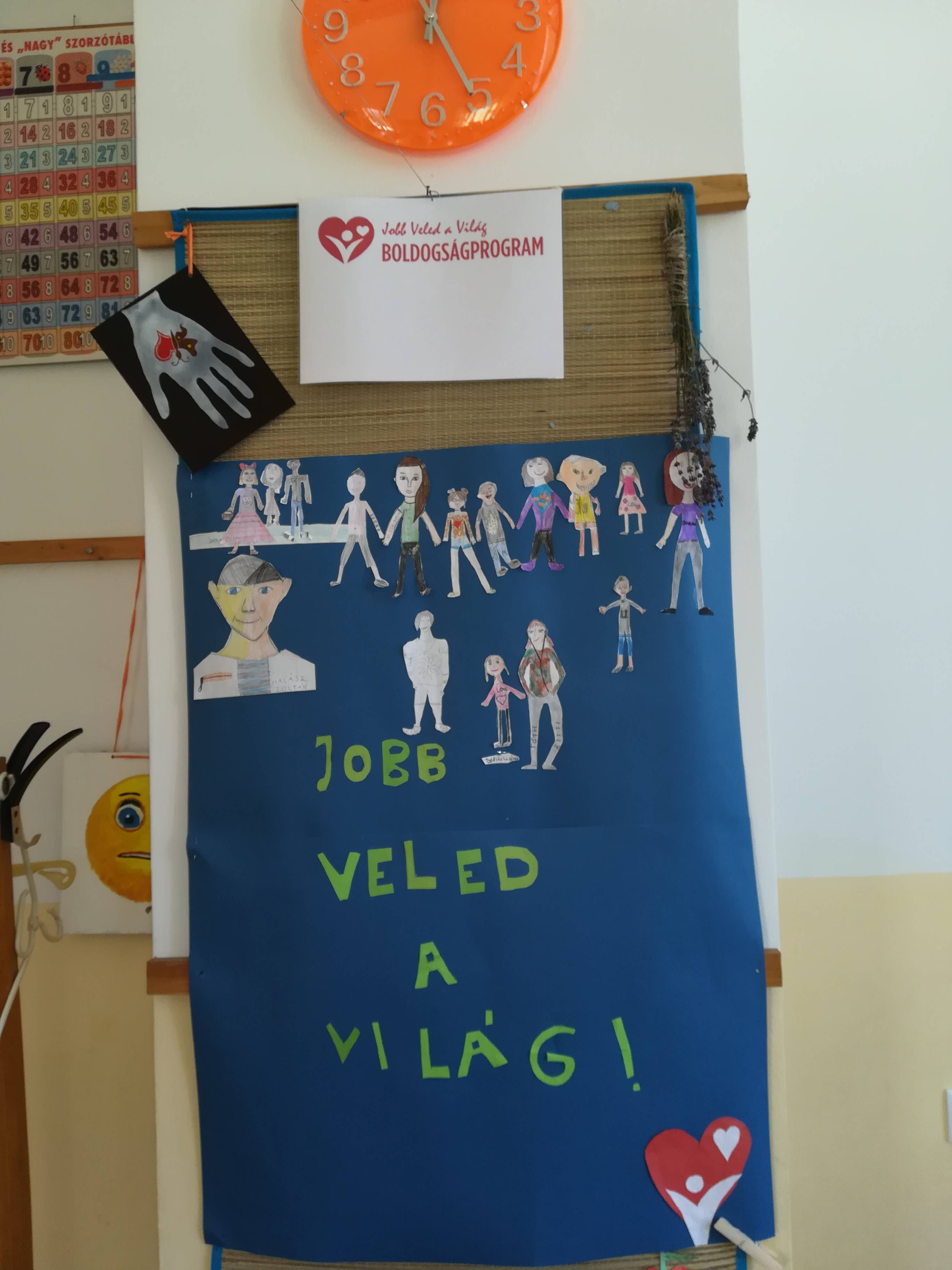 Idén új osztályként kapcsolódtunk be a boldogságprogramba. Negyedikeseim örömmel fogadták az új kihívást. Ebben a hónapban a hála témáját több napra felosztva jártuk körül. Összeszokott osztályként már az év eleji szervezési feladatok mellett, a boldogságprogramra hangolódva igyekeztünk újításokat bevezetnünk a mindennapi iskolai életünkbe. Minden reggel, hálánk jeleként, különleges üdvözlési szokást vezettünk be. A gyerekeknél megszokott már a kézfogás, ölelés, de szeptembertől már a tanító nénivel is bátran lehet „kezelni”, ölelkezni.:) Beszélgettünk a háláról. Főként a család és a barátok kiemelkedő szerepe, valamint az Isten és a teremtés kapcsolata jelent meg a gyerekek gondolataiban. Rátértünk a hálánkat kifejező szavakra, kifejezésekre, gesztusokra. Az ölelés és a szívjel azonnal maradandó élményt nyújtott. Utolsó gondolatként elkészítettük a hálabefőttet, valamint meghallgattuk a hónap dalát. Köszönjük, hogy itt lehetünk!:) 4.a és Kriszta néni