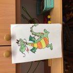 Az egyfejű sárkány elvitte az egyik kedvenc játékotokat, csak akkor adja vissza, ha megküzdötök érte. Két próbát kell kiállnotok. Küzd és nyerj! Utána örömtáncolás, mert visszaszereztük a játékunkat. Végül a megküzdés jelének kiszínezésével zártuk a foglalkozást.
