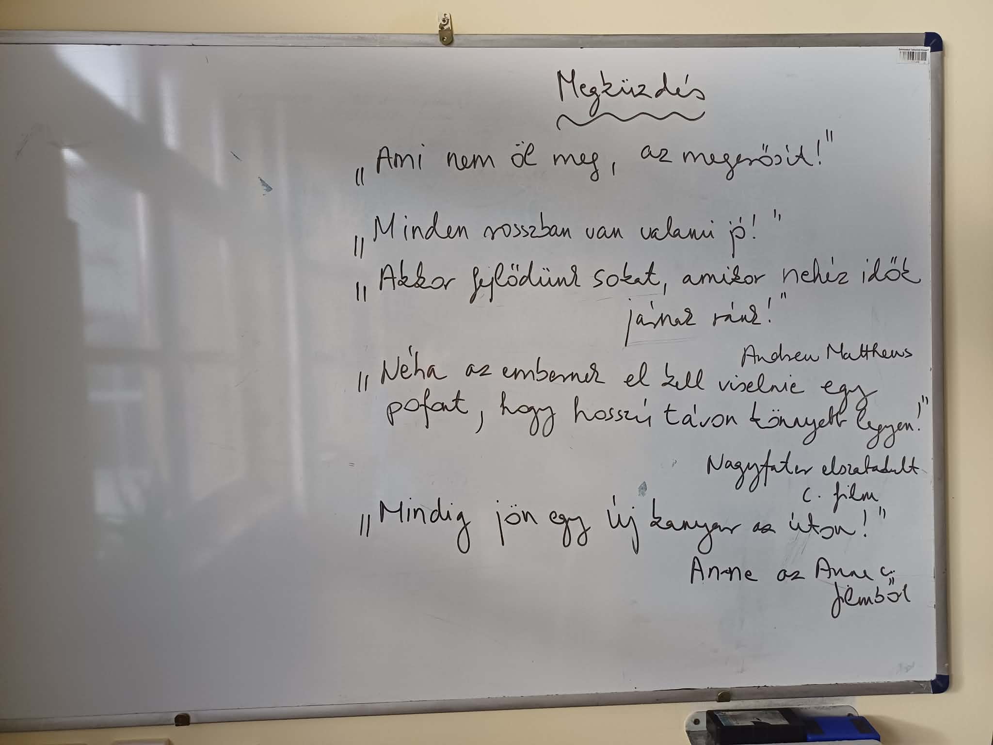 Személyes példán keresztül mutattam be nekik azt, hogy bizony vannak olyan események az életünkben, melyeket nem, vagy csak nagyon nehezen, esetleg csak évek múltán tudunk „pozitívumként” értékelni és feldolgozni. Ez a néhány gondolat nagyon meghatóra sikerült és érzékelhető volt, hogy a diákok elvitték magukkal az üzenetet, amit szántam nekik: Próbálják meg mindenben a jót látni és mindenből kihozni a legjobbat!