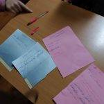 Az elején próbáltunk kicsit beszélni arról mit is jelent a megküzdés – kiderült, hogy ezzel eddig nem is igen találkoztak, teljesen új dolog volt. Így aztán vettünk egy konkrét dolgot, ami általában mindenkiben feszültésget okoz: a matek dolgozat. Elkezdtük körbejárni, mi az első gondolatuk, amikor meghallják, hogy ez vár rájuk. Ezeket összeírtuk a táblán, aztán azt is megpróbáltuk összeszedni, mi az ami ilyenkor segítene.