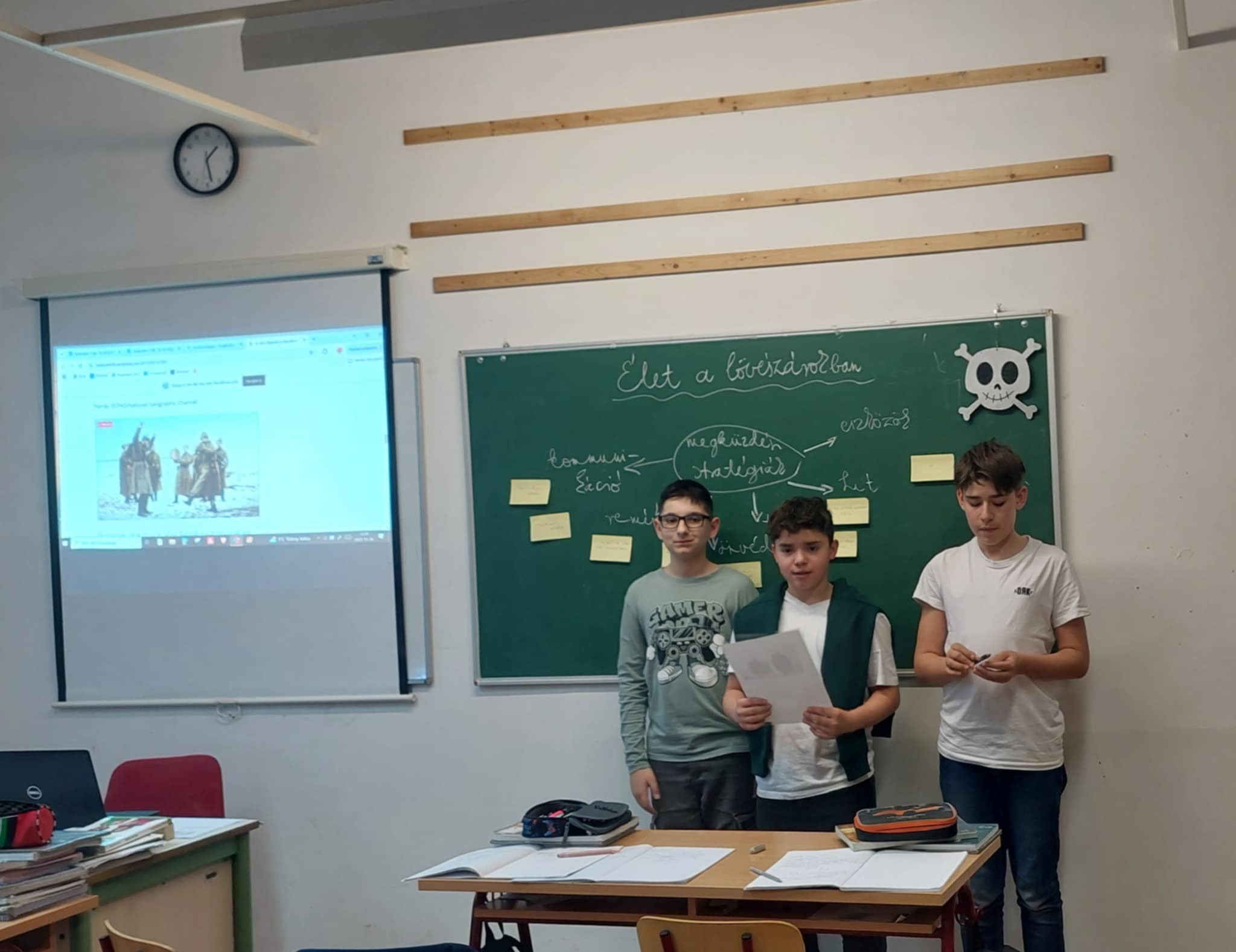 7. osztályosaimmal, már hagyományosan az 1. villágháború témaköréhez kapcsolódóan a megküzdési stratégiák témát kapcsoljuk. Így közel tudnak kerülni a korszakhoz, az akkor élt emberekhez, életükhöz, sorsukhoz, kihívásaikhoz, harcaikhoz.
