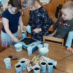 Szerda: A szurka-piszka érdeklődés megnőtt a mai napon, sokan csináltak szurkálós virágot. A reggeli után a gyerekek vissza építették a „Nyugalom szigetét”, ahol ma nagyon nyugodt játék folyt. Az egyik asztalnál kipakoltunk, és elkezdtük a babok, tulipánok ültetését. Burgonyát, és vöröshagymát is csíráztatunk, hogy lássuk a különbséget közöttük. A szőnyegen megkérdeztem tőlük, hogyan érezték magukat ültetés közben? Mert a jókedvhez, a nyugalom érzéséhez a kertészkedés, ültetés nagyon jó stratégia. Megbeszéltük, hogy mit raktunk az edénybe, mibe ültettük a babot, és a tulipán hagymát, és mire van szüksége a növényeknek ahhoz, hogy kibújjanak a földből. Azt is megkérdeztem, hogy szerintük a magból, virághagymából mi bújik majd ki először, és miért. Nem gondoltam, de tudták a választ. A mese ma diavetítőről ment, A Radírpók. A gyümölcsevés, víz ivás után még volt időnk egy táncra, lufizásra (Kicsi Gesztenye Klub: Papírsárkány) mert utána mentünk az ovi aulájába, megnézni a Hóvirág csoport műsorát, ami nagyon tetszett a gyerekeknek.