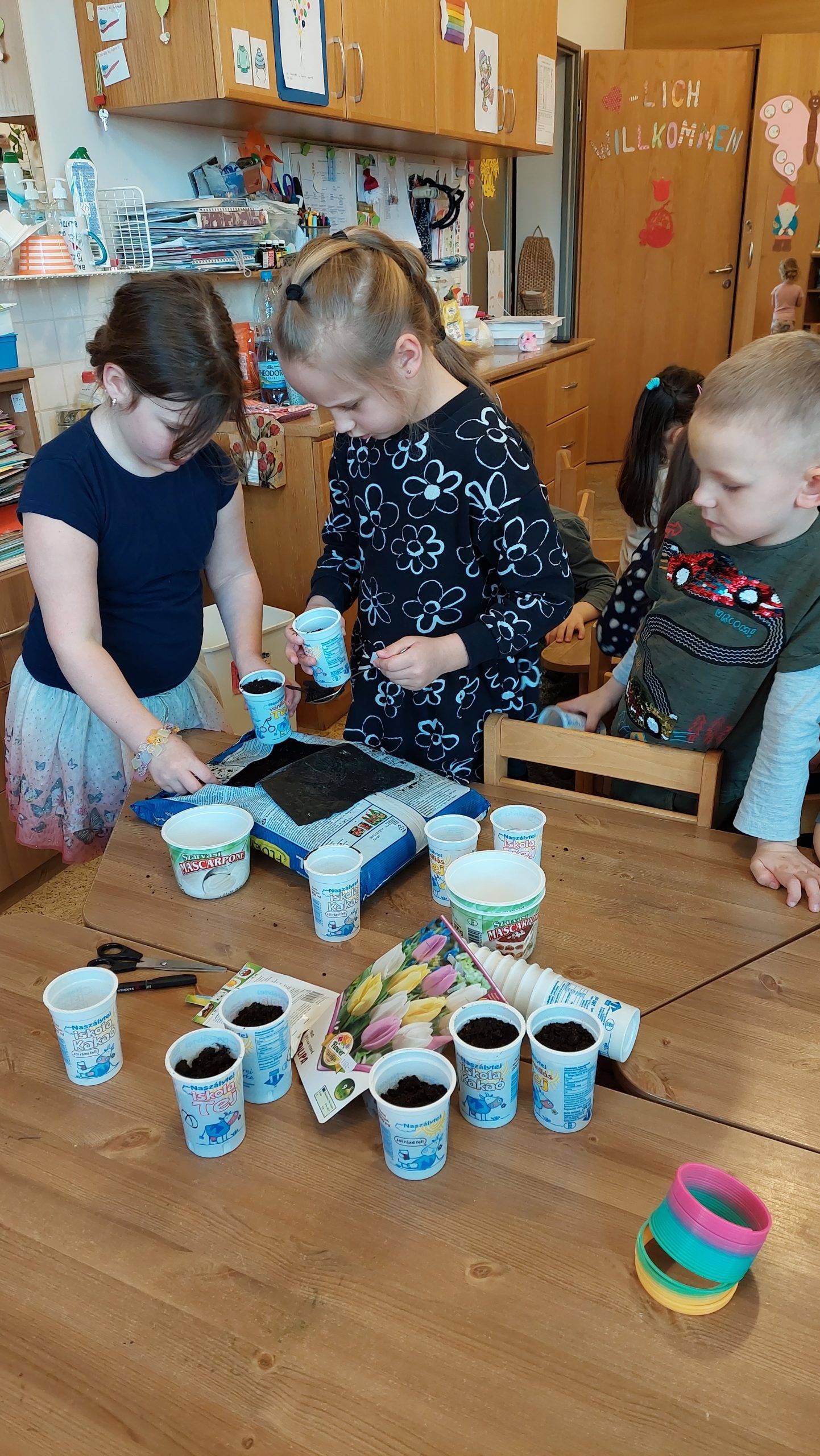 Szerda: A szurka-piszka érdeklődés megnőtt a mai napon, sokan csináltak szurkálós virágot. A reggeli után a gyerekek vissza építették a „Nyugalom szigetét”, ahol ma nagyon nyugodt játék folyt. Az egyik asztalnál kipakoltunk, és elkezdtük a babok, tulipánok ültetését. Burgonyát, és vöröshagymát is csíráztatunk, hogy lássuk a különbséget közöttük. A szőnyegen megkérdeztem tőlük, hogyan érezték magukat ültetés közben? Mert a jókedvhez, a nyugalom érzéséhez a kertészkedés, ültetés nagyon jó stratégia. Megbeszéltük, hogy mit raktunk az edénybe, mibe ültettük a babot, és a tulipán hagymát, és mire van szüksége a növényeknek ahhoz, hogy kibújjanak a földből. Azt is megkérdeztem, hogy szerintük a magból, virághagymából mi bújik majd ki először, és miért. Nem gondoltam, de tudták a választ. A mese ma diavetítőről ment, A Radírpók. A gyümölcsevés, víz ivás után még volt időnk egy táncra, lufizásra (Kicsi Gesztenye Klub: Papírsárkány) mert utána mentünk az ovi aulájába, megnézni a Hóvirág csoport műsorát, ami nagyon tetszett a gyerekeknek.
