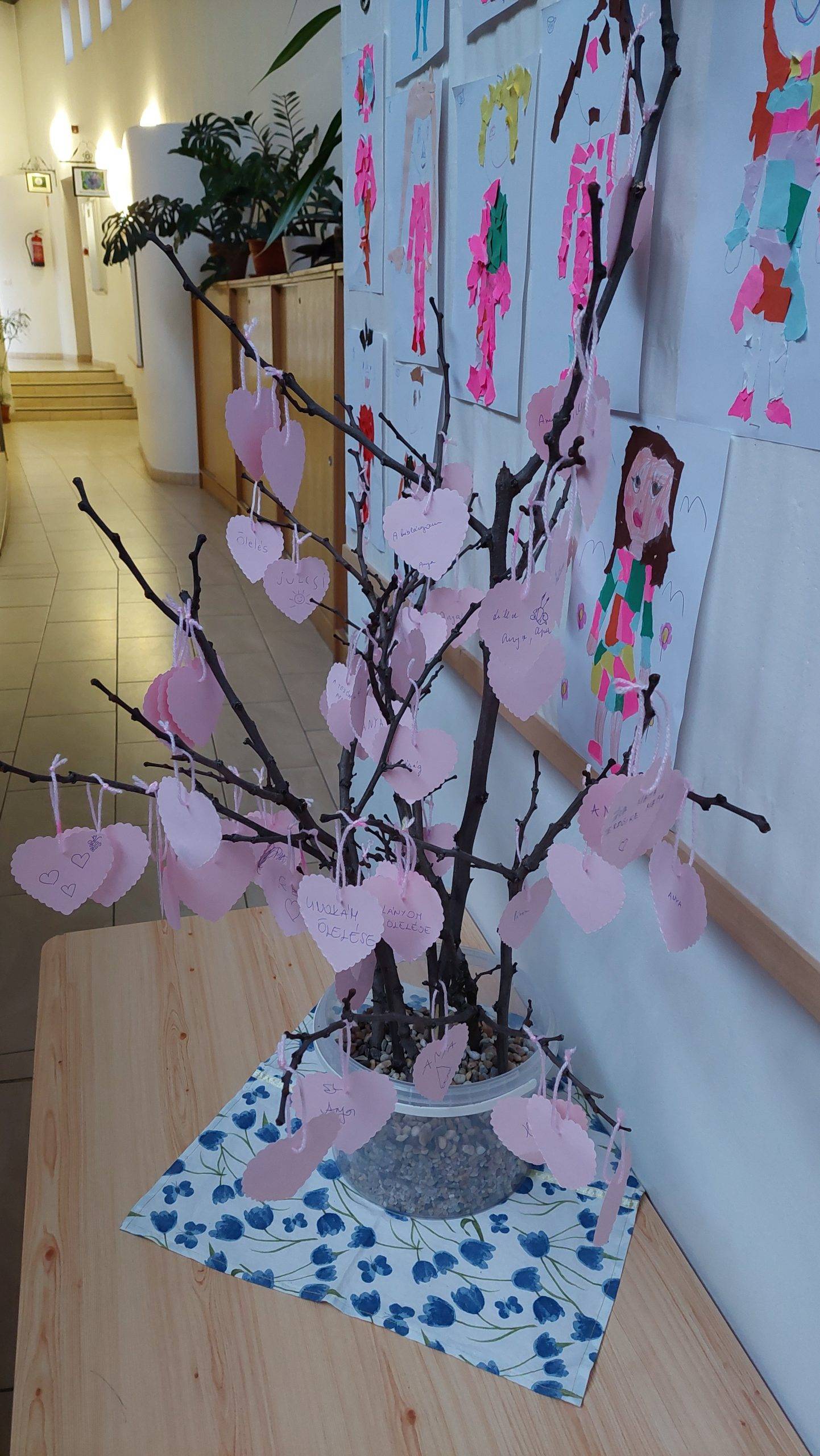 A szülők és kollegák felé a héten is volt feladat: „Kérlek tegyél a fára egy szívecskét, amire ráírod, hogy Ki, vagy mi segít Neked, ha valami amit nagyon szerettél volna, nem sikerült?