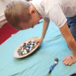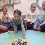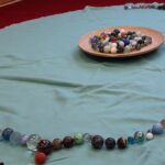 Vidámfalva lakóinak javaslatára mi is kipróbáltuk a varázsszemüveget. Nem csalás, nem ámítás, hiszen a segítségével ténylegesen megláttuk magunkban és egymásban is a jót, az értékeset. Ezt a csoportban hangosan is megfogalmaztuk egymásnak. Mindeküzben a megosztott belső kincsekből egy varázslatos üveggolyófüzért készítettünk, amelynek látványa mosolyt csalt az arcunkra, örömöt a szívünkbe.