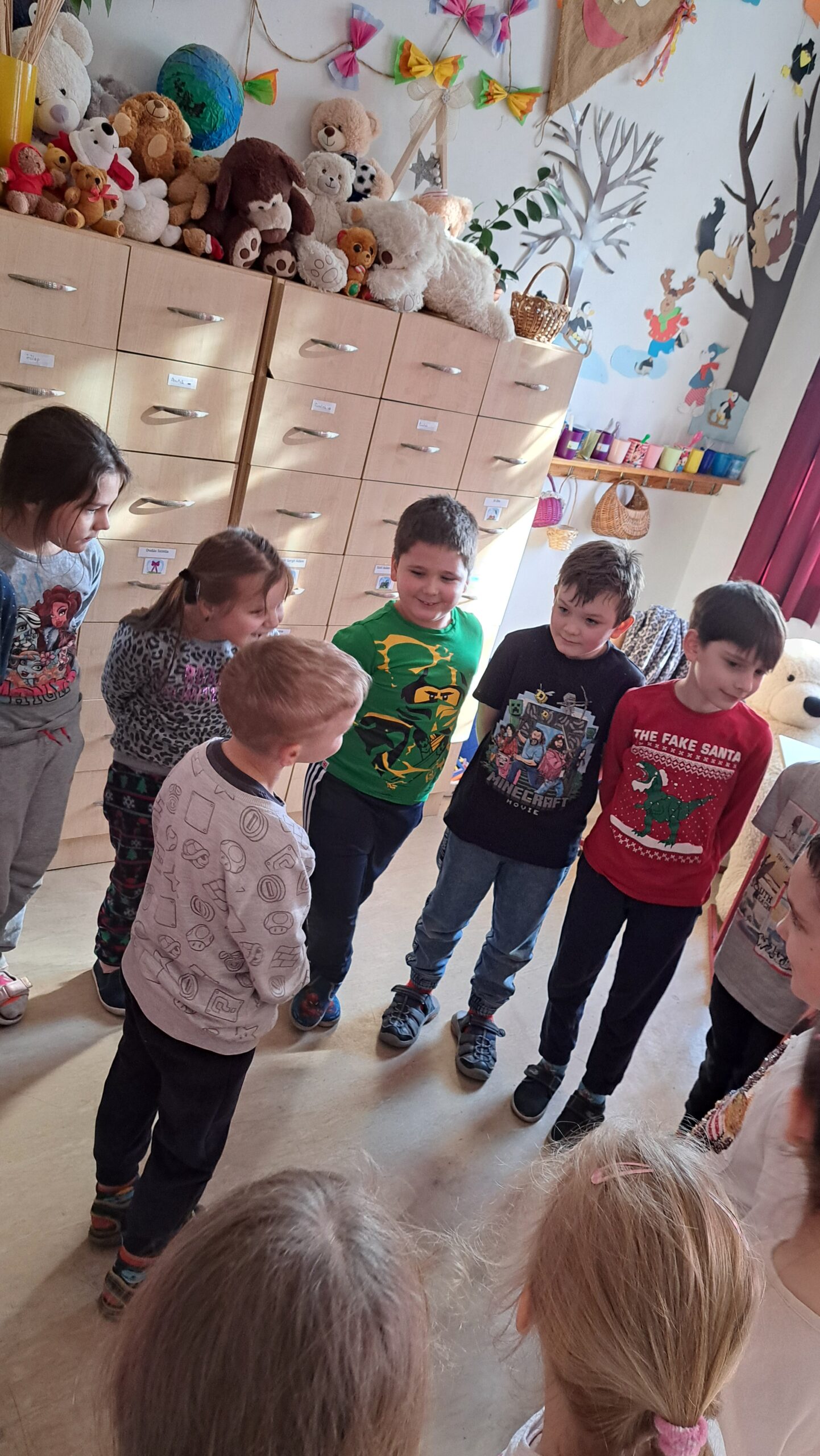A foglalkozás az Irkafirka relaxációs gyakorlattal indult. A gyerekek megnyugodtak, ellazultak, figyelmük befelé irányult, így felkészültek a közös munkára és az érzelmi ráhangolódásra.