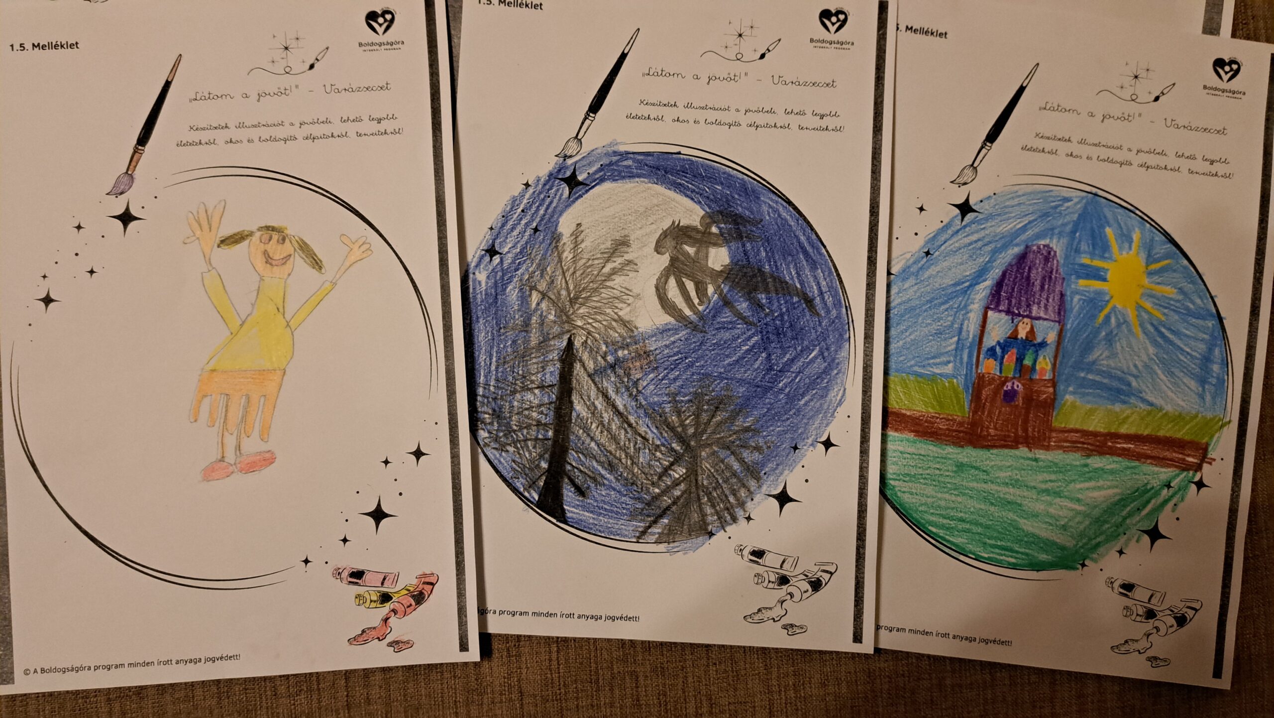 A beszélgetés során a gyerekek megfogalmazták saját céljaikat, egyszerű, számukra fontos és elérhető példákon keresztül. A gyerekek a céljaikat rajzos formában is megjelenítették. A rajzolás közben Bagdi Bella Van nekem egy álmom című dalát hallgattuk, amely támogatta az elmélyülést, és az érzelmi feltöltődést. A zenehallgatást a gyerekek mindig nagy örömmel veszik.
