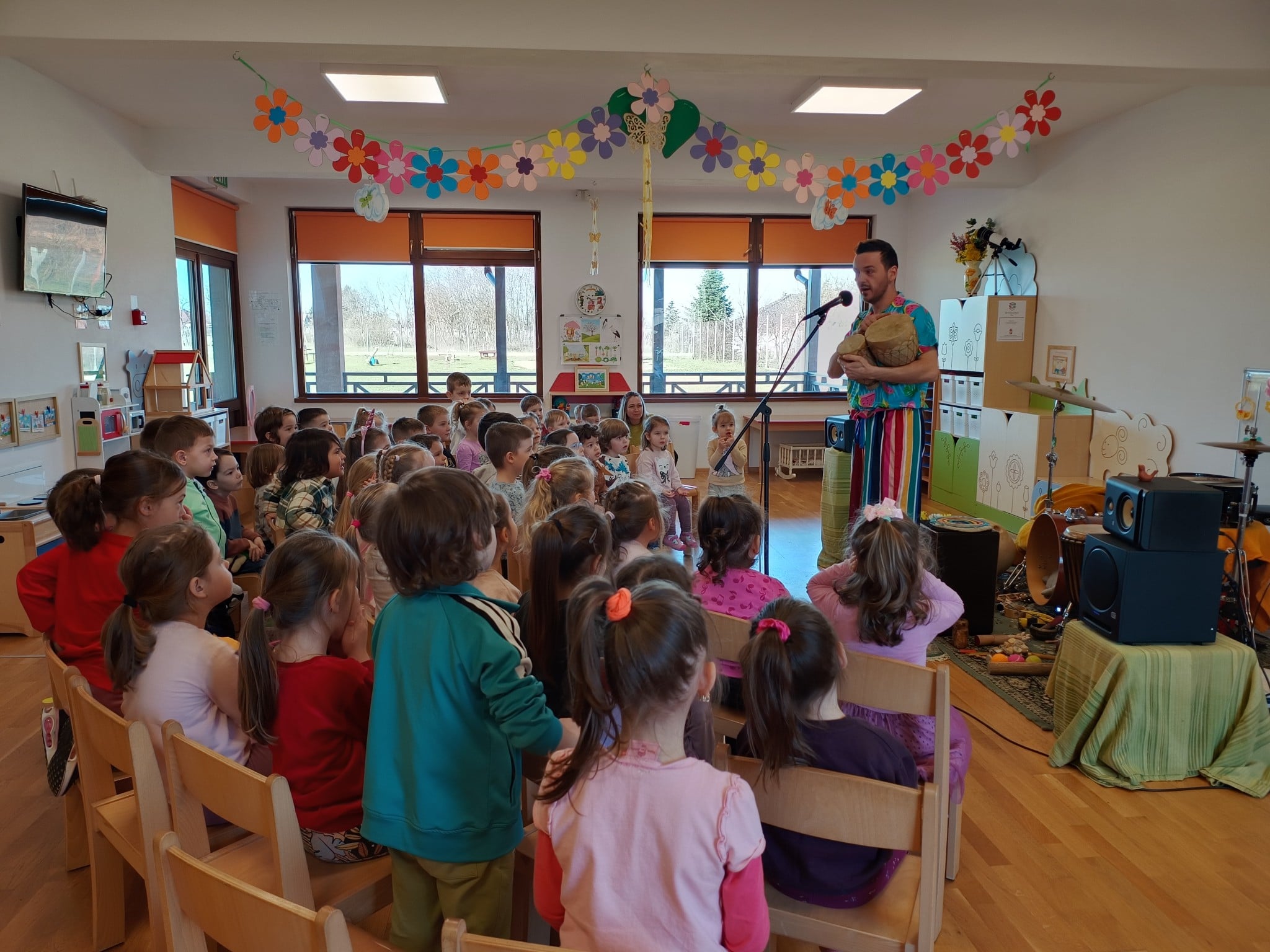 Végezetül bevonva az érzékszerveinket a ,,Dobbanó hangok” elnevezésű interaktív előadáson vehettünk részt a gyerekekkel. Ferencz Áron műsora egy olyan interaktív előadás volt, amelyben a gyermekek rengeteg dobbal, ritmushangszerrel ismerkedhetek meg. Az előadás célja volt, hogy a zene és az ütős hangszerek által izgalmas és szórakoztató formában mutassa be az emberiség fejlődéstörténetét, valamint a hangok, a tudat és a természet összefüggéseit.