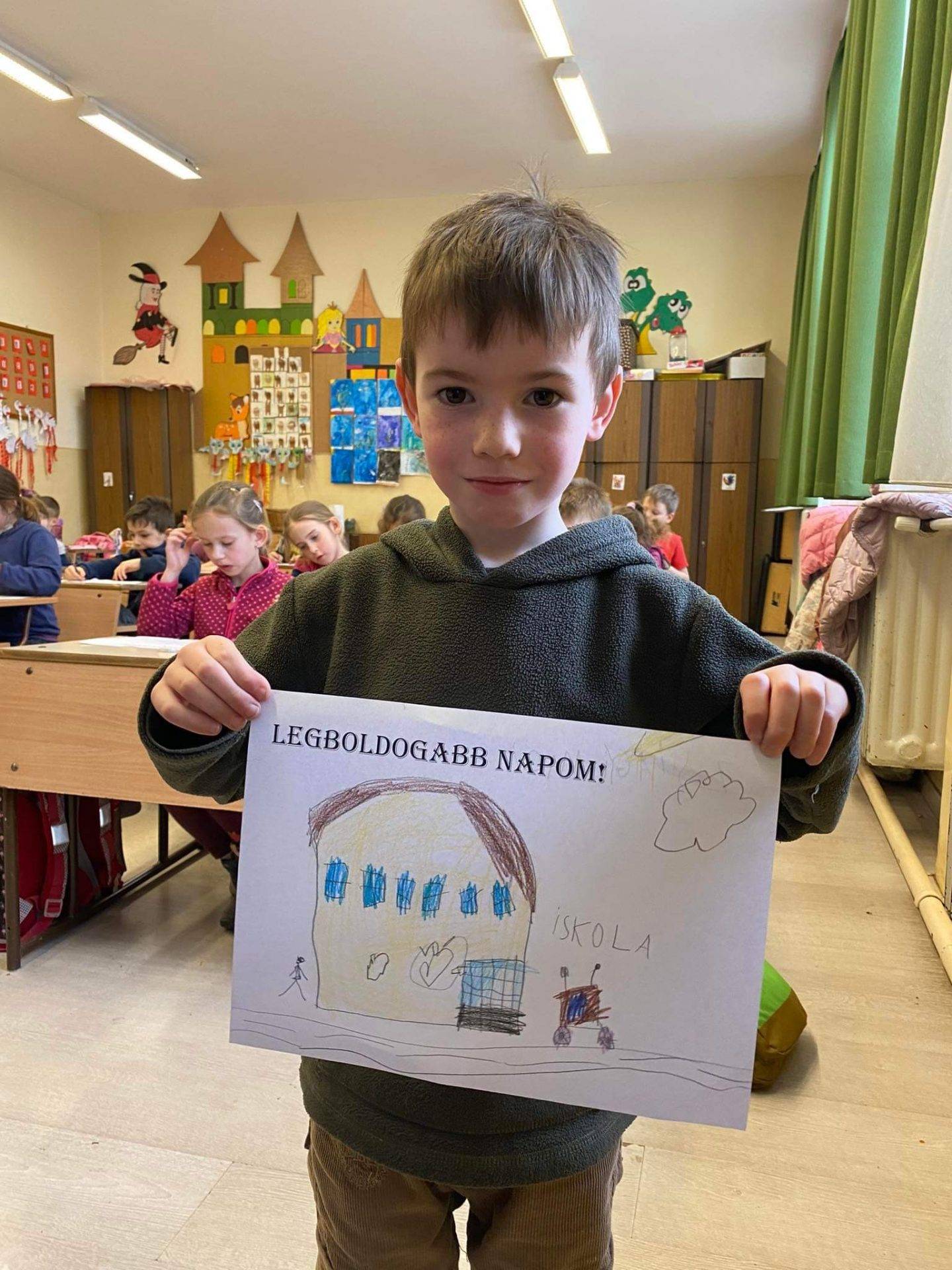 A gyerekeknek le kellett rajzolni, a legboldogabb napjukat, illetve mindennapos dolgokban megtalálni a legboldogabb pillanatot.