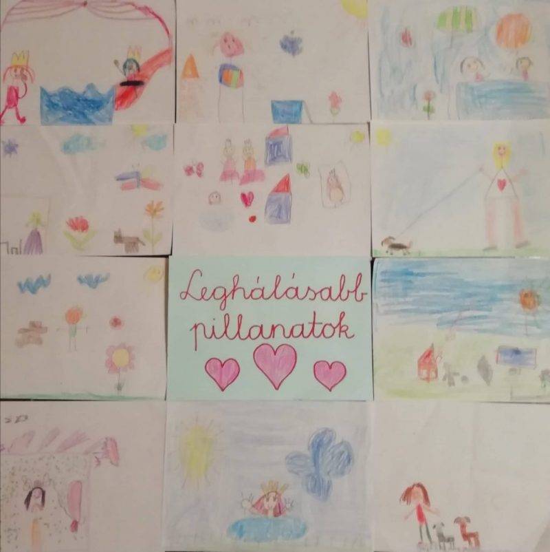 Új kis csodacsapatom született ebben a tanévben. A kis elsőseimmel ismerkedünk a boldogságórákkal. Nagyon tetszett nekik a hónap dala, amit a foglalkozás elején meghallgattunk. Először nehezen találtuk, hogy miért is lehetünk hálásak, de egyre jobban ráéreztek a témára. A mi első próbálkozásunk egyéni munka volt, melyet közösen beszéltünk meg, majd egy nagy közös képpé alakítottunk. Ez lett a mi „hálamontázsunk”. Mindenki talált a nyári szünetből olyan élményt, amiért hálás lehet és szívesen is meséltek egy-egy hálás élményükről.