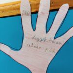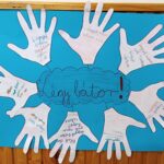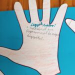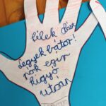 „Légy bátor!”- egymás erősítése, bátorítása volt a fő témakörünk. A gyerekek „bátorító tenyér” nyomatot készítettek és beleírták, hogy mitől félnek, mihez kérnek bátorítást.