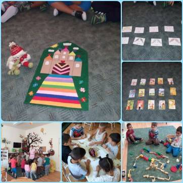 1. nap: A csoportba megérkezett Dórika, aki nagyon félt a gyerekek egyből befogadták és szeretettel fogadták 🙂 Megbeszéltük hogy Dórika mese világból érkezett hozzánk és hogy nincs hol laknia. A gyerekeknek az volt az első feladata hogy csukják be a szemüket és képzeljék el a boldogság várát, majd kinyitották a szemüket és meglátták az általam előkészített színes várat és megbeszéltük, hogy abba fog lakni Dórika.