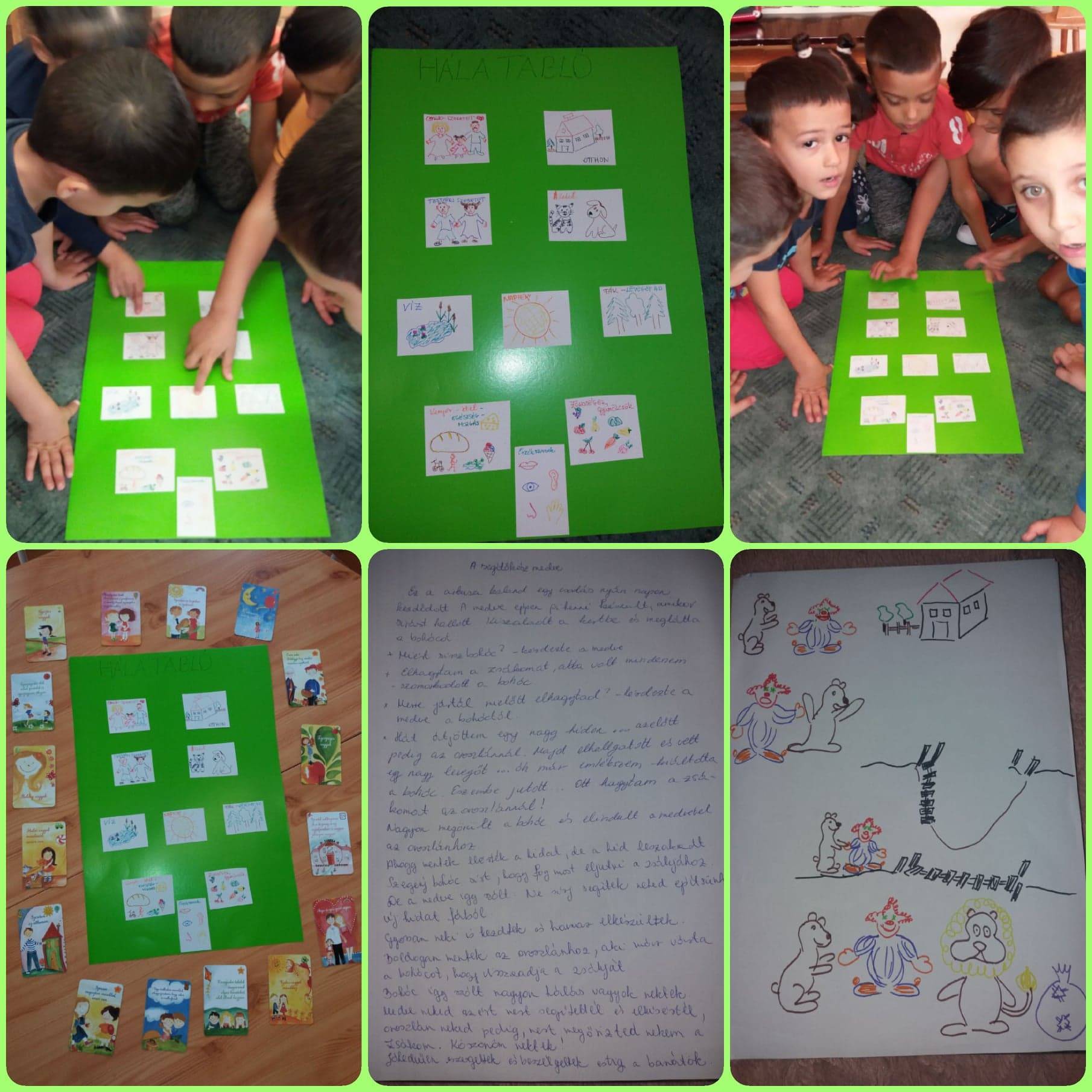 Ezután a Hálafa meséjét meséltem el nekik, megrajzoltam a mesét így képeken követhették végig a mese folyamatát.