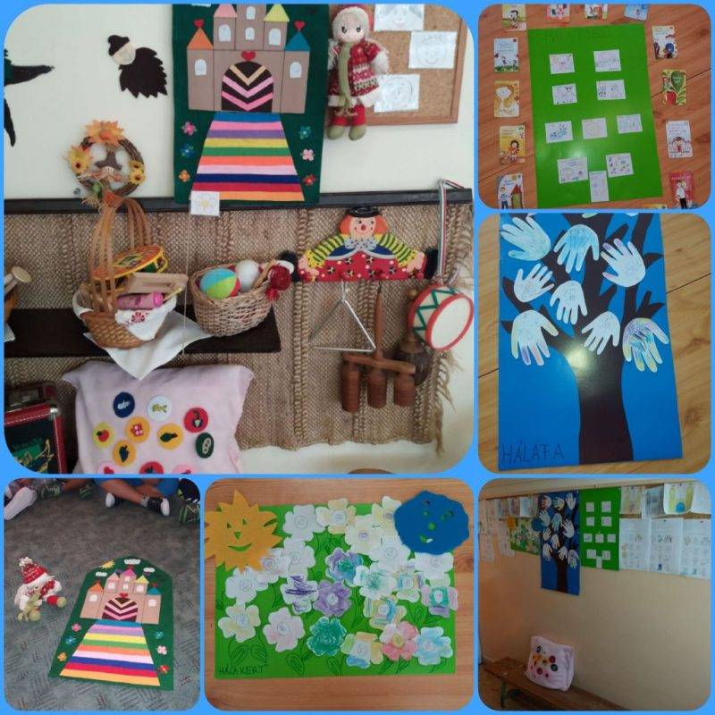 A hetet sikeresen zártuk le. Az elkészült alkotásokat a bejárathoz helyeztük, hogy a szülők is meg tudják tekinteni, miket készítettek a gyerekek a héten.