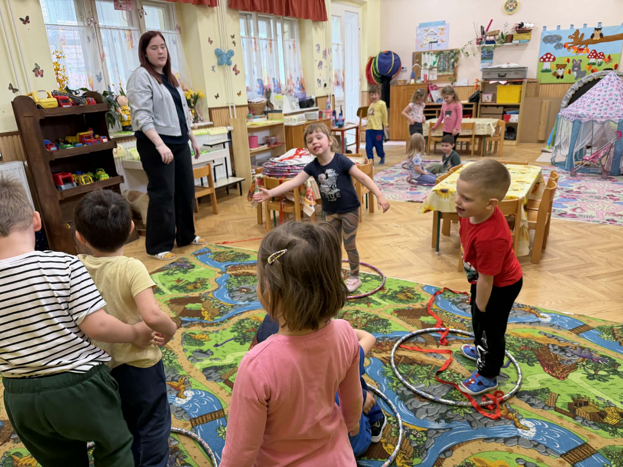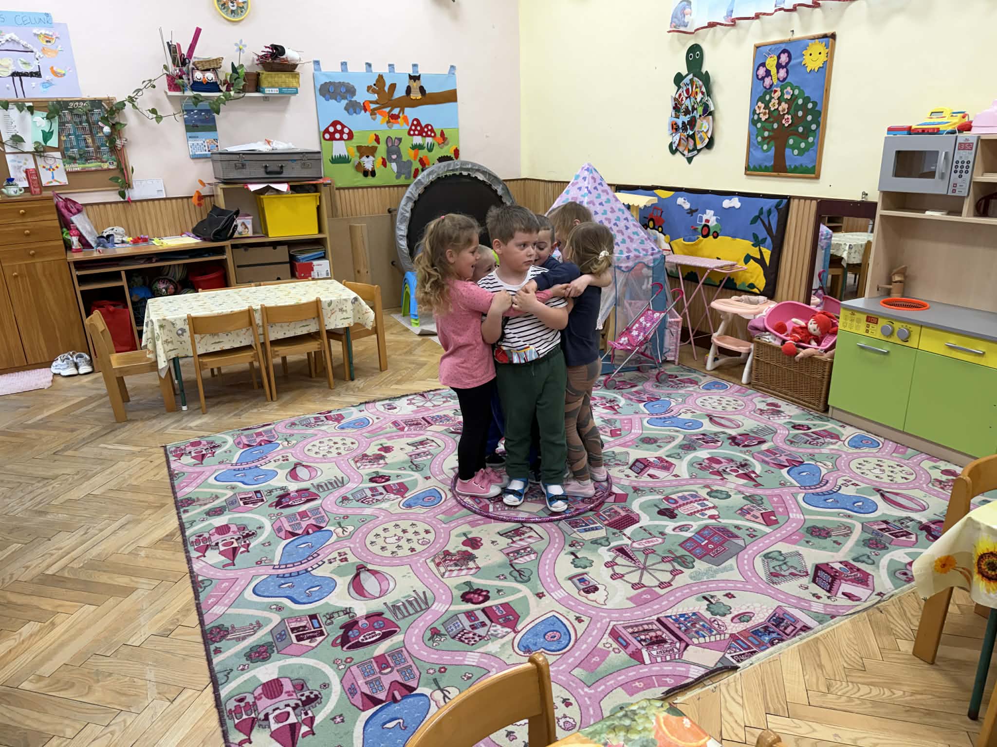 Februárban a Boldogságórán a megküzdési stratégiák voltak a középpontban. Az alkalmat a szokásos mondókával kezdtük, majd egy rövid relaxációs gyakorlat segített ráhangolódni a foglalkozásra. Ezt követően két játékot játszottunk. Az egyik a karikás cápák játék volt, ahol a „jön a cápa” jelzésre a gyerekeknek gyorsan hajót kellett találniuk. A másik a plédes cápák játék volt, amely során egy közös „hajóba” kellett beszállniuk. A játékok során a karikák száma folyamatosan csökkent, a takaró pedig egyre kisebb lett, így a gyerekek együttműködése és alkalmazkodóképessége is fejlődött.