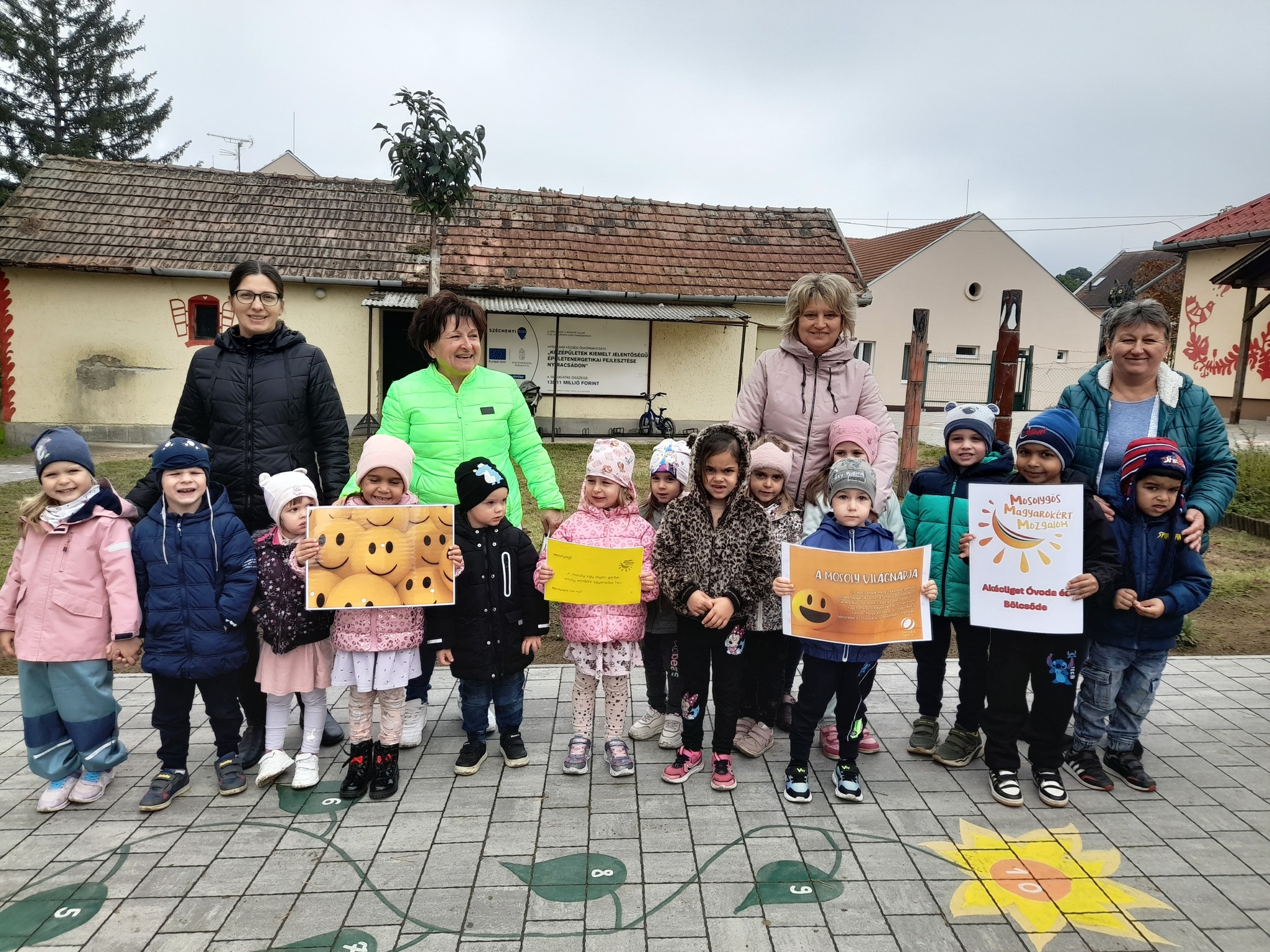 Október hónap témaköre, az optimizmus gyakorlása. Nagyon jól illett a téma feldolgozásához, október 04-én tartandó Mosoly Világnapja, mi is csatlakoztunk a kezdeményezéshez. Plakátokat és kisebb ajándék kártyákat nyomtatunk ki. Az udvaron gyülekezve közös programon vettünk részt. Ha jó a kedved zenéjére tapsoltunk, dobbantottunk, ugráltunk…stb. Utána Bagdy Bella: „Ha boldog vagy mutasd meg mindenkinek” című gyerekdalra mozogtunk. Végül az óvoda minden csoportja felkerekedett és szét osztotta a kártyákat a falú lakóinak. Mi ellátogatunk a zöldség boltba, kenyérboltba, védőnőhöz, könyvtárba, önkormányzathoz, orvosi rendelőbe és az utcán járó kelő embereknek is adtunk a mosolykártyákból. Az emberek örömmel fogadták a kártyán lévő jó kívánságokat, mi pedig örültünk, hogy mosolyt tudtunk csalni az arcukra. A gyerekekkel mi is nagyon jól éreztük magunkat, ezen a napot mi is sokat mosolyogtunk. Az optimizmus gyakorlásához a már
