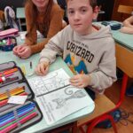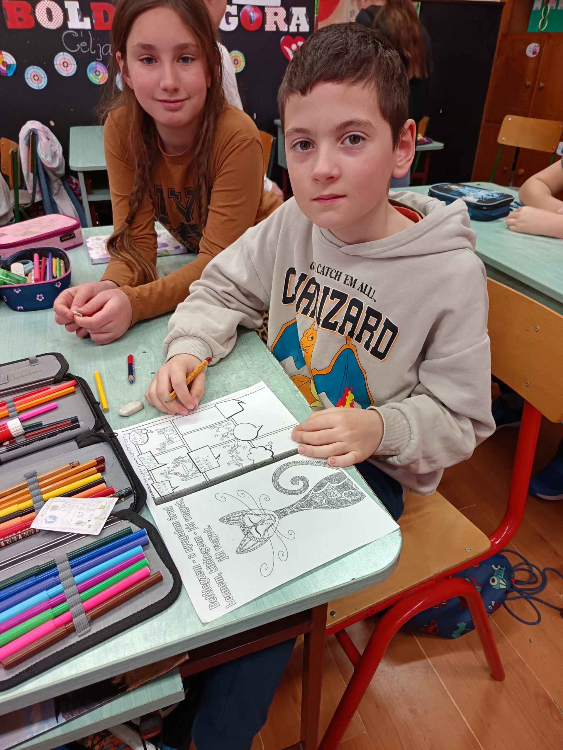 A hónap témájának megfelelően sok oldalról körbejártuk, ki hogyan kezeli a feszültséget, a problémákat, bármiféle nehéz helyzetet, amellyel szembe találja magát. Minden foglalkozás elején meghallgattuk, énekeltük az Ellazulni jaj, de jó című dalt. A munkafüzet feladataiból szemezgetve színeztünk, mesét hallgattunk, készítettünk indulathőmérőt, van, aki képregényt rajzolt, végig jártuk az utat a labirintusban a problémától a megoldásig. Gyűjtöttünk megerősítéseket, milyen mondatok segítenek nekünk a nehéz helyzetekben. Sokat beszélgettünk a bevált és kipróbált praktikákról.