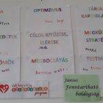 A tanév utolsó napjain sokat játszottunk a Pozitivity társasjátékkal. Nagy sikere volt a gyerekeknél. Összegyűjtöttük az év témáit, és mindenki kiválaszthatta a számára legkedvesebbet. Az év végi plakátunkra pedig legnagyobb örömünkre már mindenki saját maga írta fel a nevét a megfelelő helyre.