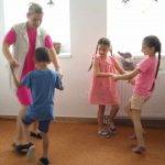 Az e havi témánk előtt relaxációs gyakorlattal indítottunk „Hintaszék”-ként gurultunk előre-hátra. Az összetett mozdulatsor elvégzésénél nagyon koncentráltak és mindenki sikeresen el is tudta végezni tökéletesen. A közös tánc, ének ismét fellendítette a közös tevékenykedést, a Jobb veled a világ című dal segítségével. A témát mindenki egyénenként a saját maga gondolataival kiegészítve elemeztük, tapasztalatokkal alátámasztottuk. A szeretetfolyósó játék tökéletesen példázta az együttműködés, a bizalom meglétének fontosságát, mindenki kapott egy kedves tulajdonságot, ami társa számára személyiségében megragadó. Mindenki bekötött szemmel vállalkozott ezen a folyósón végig haladni és sikeresen végig is értek biztonságban. Ezután a Seprűtánc következett, mely a kis létszámból adódóan igen rövidre sikeredett, de többször is eljátszottuk. Majd a Bízz bennem játék alkalmával mindenkit végig vezettek a játékösvényen, sikerélményekkel gazdagodva. Boldogságfűzéren minden jelet végig vettünk és örömmel nyugtáztam, hogy az éve során megismert jeleket nem felejtették el a gyermekek. A zárás most is közös tánc volt szokásainkhoz mérten. A nevelési év során végig értünk a Boldogságvárunk lépcsőfokain és a gyermekek rengeteg jó élménnyel gazdagodhattak véleményem szerint.