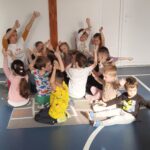Ott egy mindfulness gyakorlatot is elvégeztünk: „a szerető kedvesség kifejezése” kártyáról képzeltük el, ahogy a szeretet áramlik a környezetünk és a távolabbi emberek irányába. A gyerekek becsukott szemmel végezték a gyakorlatot.