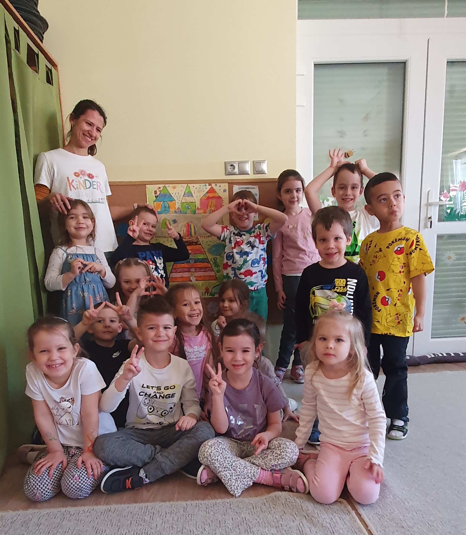 Ott egy mindfulness gyakorlatot is elvégeztünk: „a szerető kedvesség kifejezése” kártyáról képzeltük el, ahogy a szeretet áramlik a környezetünk és a távolabbi emberek irányába. A gyerekek becsukott szemmel végezték a gyakorlatot.