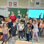 Az elsősökhöz a megszokott időpontban érkeztem, a szerdai napon. Marika néni a tanító néni már a hónap zenéjével várt engem az okostáblán kikeresve, kivetítve. Mindig örömmel jövök hozzájuk, hiszen ők is nagy szeretettel várnak.