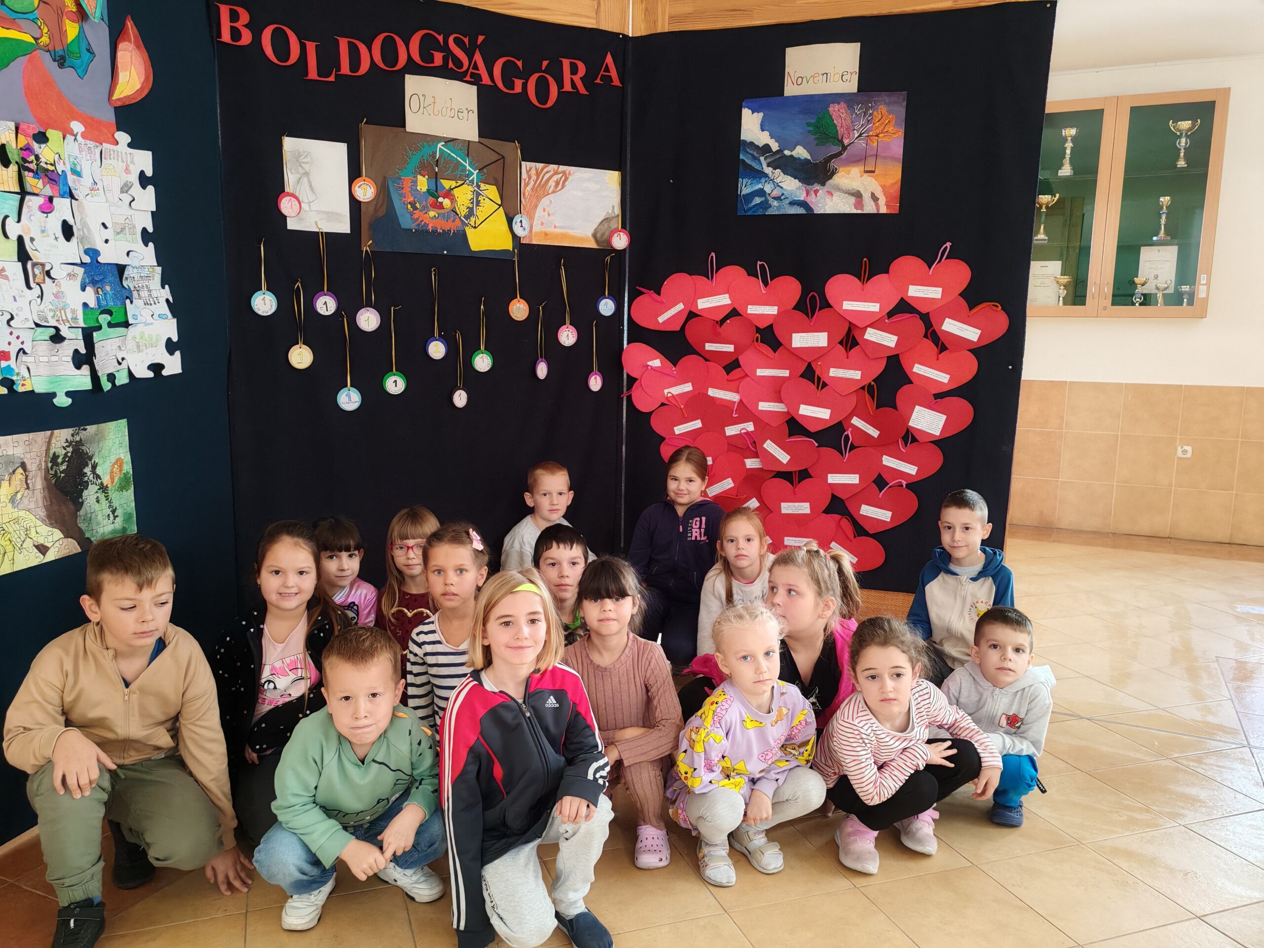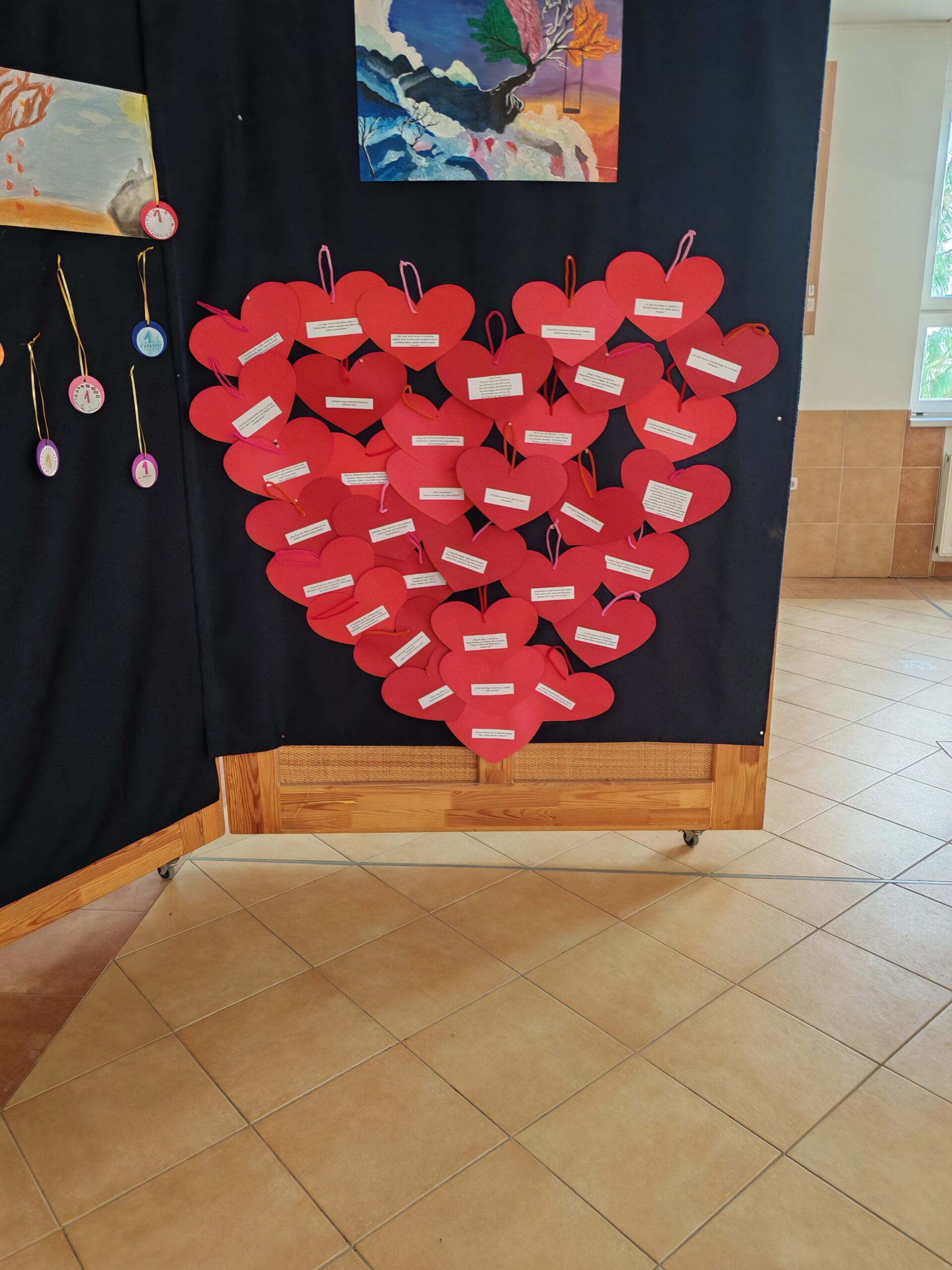 Az 1. évfolyamos gyerekekkel a barátságról beszélgettünk, kinek mit jelent a barátság. A tanulók elmondták a saját élményeiket, tapasztalataikat, ki milyen ajándékot adott illetve kapott a barátjától, ki hogyan tölti az idejét a barátjával. Piros kartonból szívecskéket vágtunk ki, amikre barátságról szóló idézeteket ragasztottunk, melyeket felolvastam és példákon keresztül közösen megbeszéltük a jelentésüket.