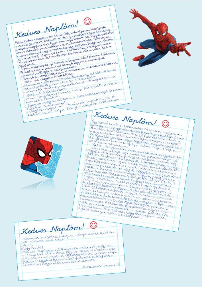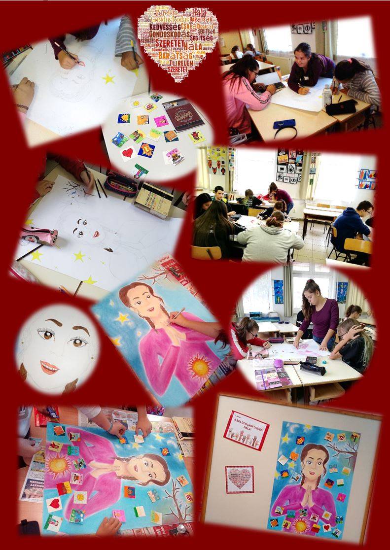 A következő két órán csoportmunkában, ki-ki a saját érdeklődésének, adottságainak, kedvének megfelelő feladaton dolgozott. Egy csapat igazi stábként együttműködve forgatókönyvet írt, párbeszédeket állított össze, szereposztást készített, olvasópróbát tartott, majd egy kisfilmet forgatott. A másik kis csoport egy hős hálanaplójába írt bejegyzéseket. Az osztály harmadik harmada pedig két csapatra osztódva apró örömre, hálára okot adó kis élmény-képecskéket, illetve egy nagy plakátalapot rajzolt, festett.
