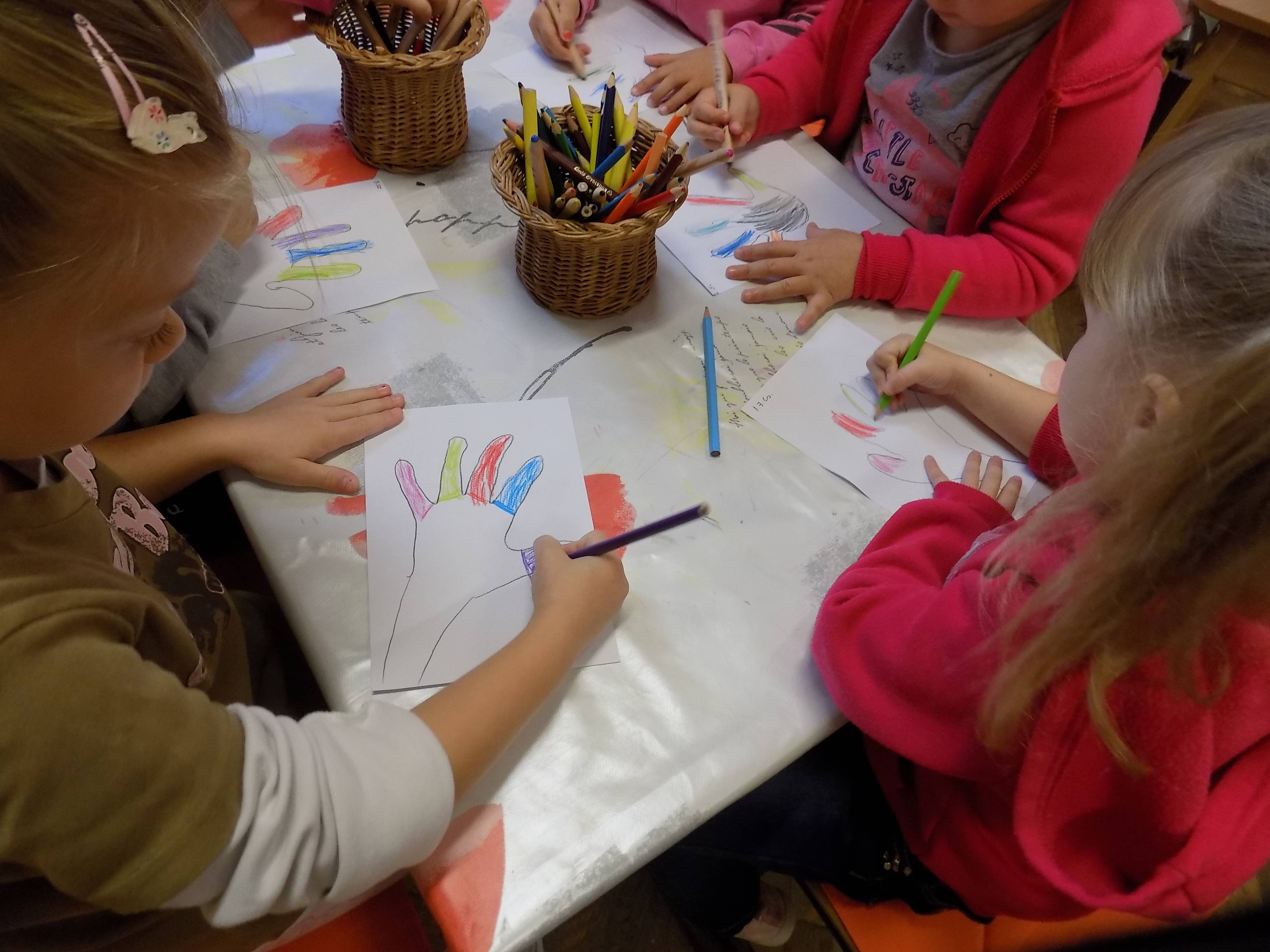 Az óvodánkban jelképesen meg alkottuk a Hála kertünket, melyben megjelennek a hála virágok és a ragyogó napsütés. Utána mindenki még el készítette a saját kis hála kezecskéjét. Elmondták, hogy miért hálásak a csoportban.