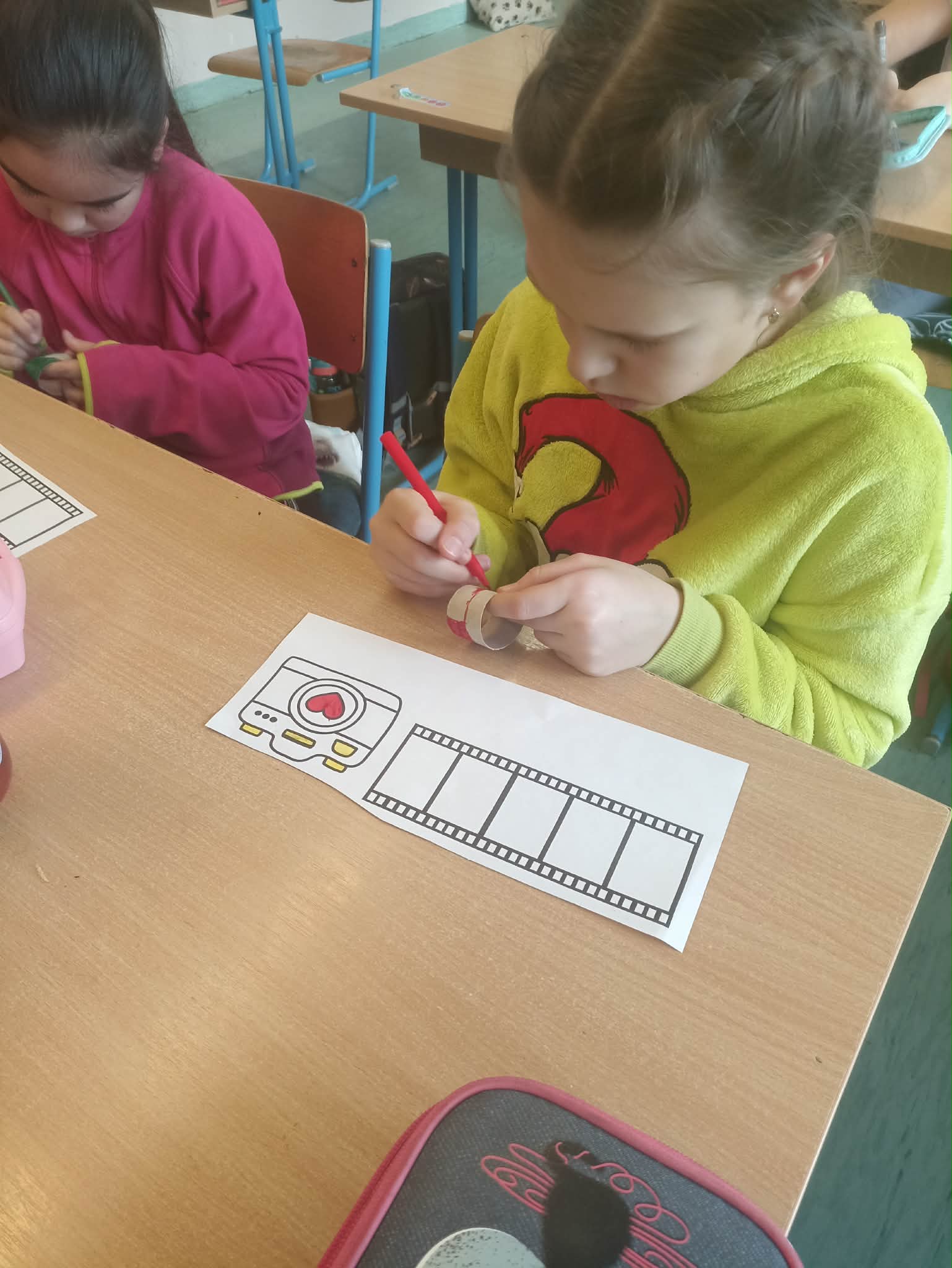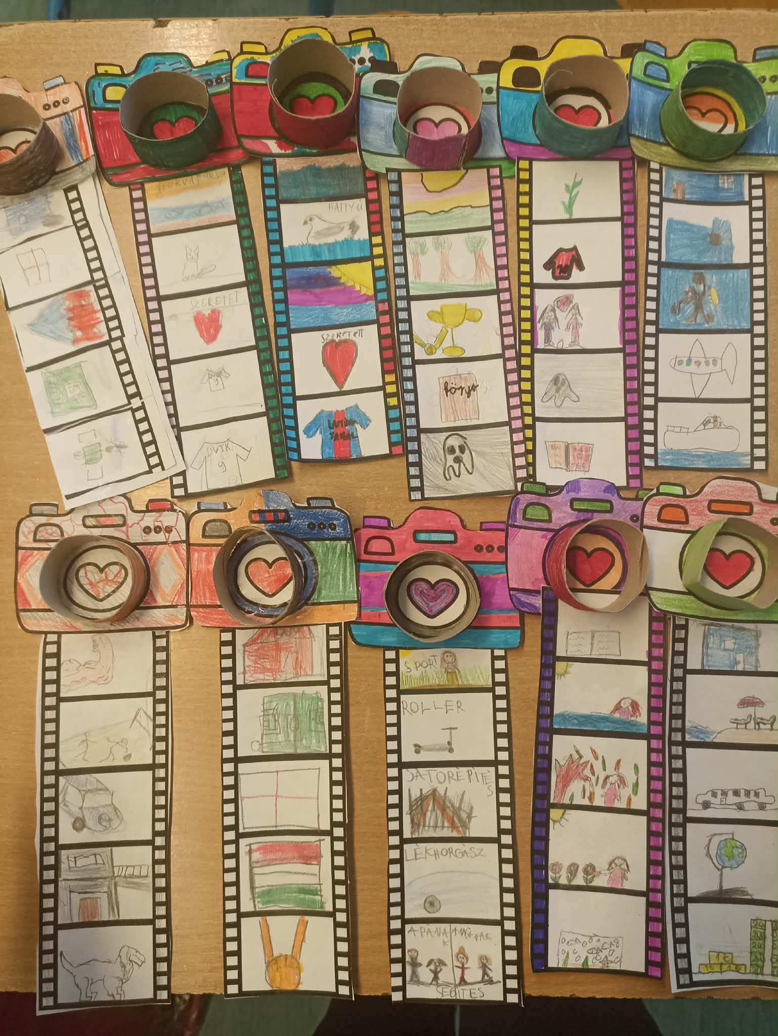 A mai Boldogságórán izgalmas felfedezőútra indultunk a harmadik osztályosokkal, ahol a célok kitűzése volt a középpontban. Beszélgettünk arról, miért fontosak az álmok, és hogyan segítenek bennünket a kitartásban mind az iskolában, mind a mindennapi életben. A gyerekek nagy lelkesedéssel meséltek idei terveikről és távolabbi vágyaikról, majd kreatív formába is öntötték azokat. Mindenki készített egy egyedi „fényképezőgépet”, amelynek filmkockáira rajzolták le legfontosabb céljaikat, így vizuálisan is rögzítették a sikeres jövő felé vezető útjukat.