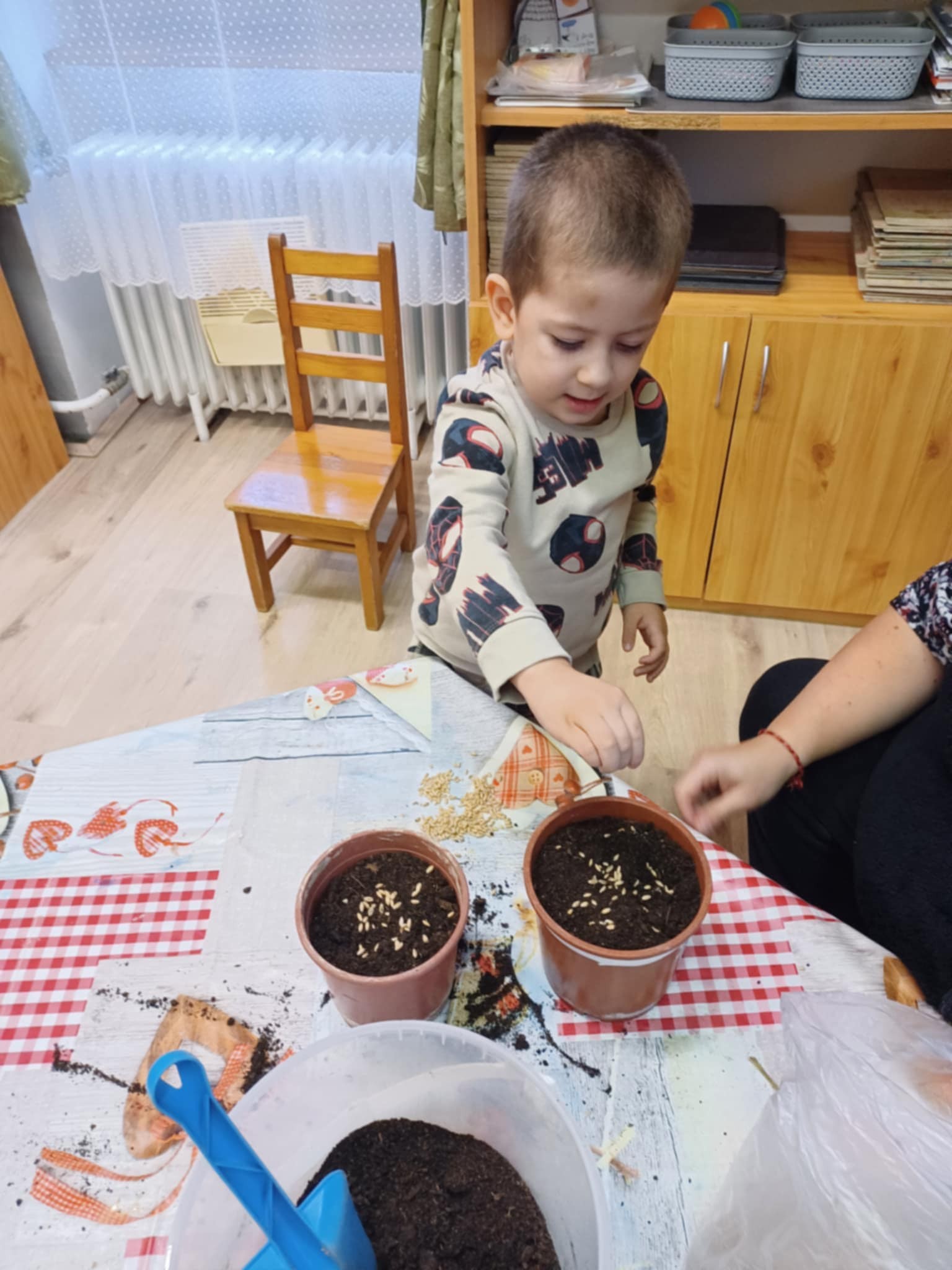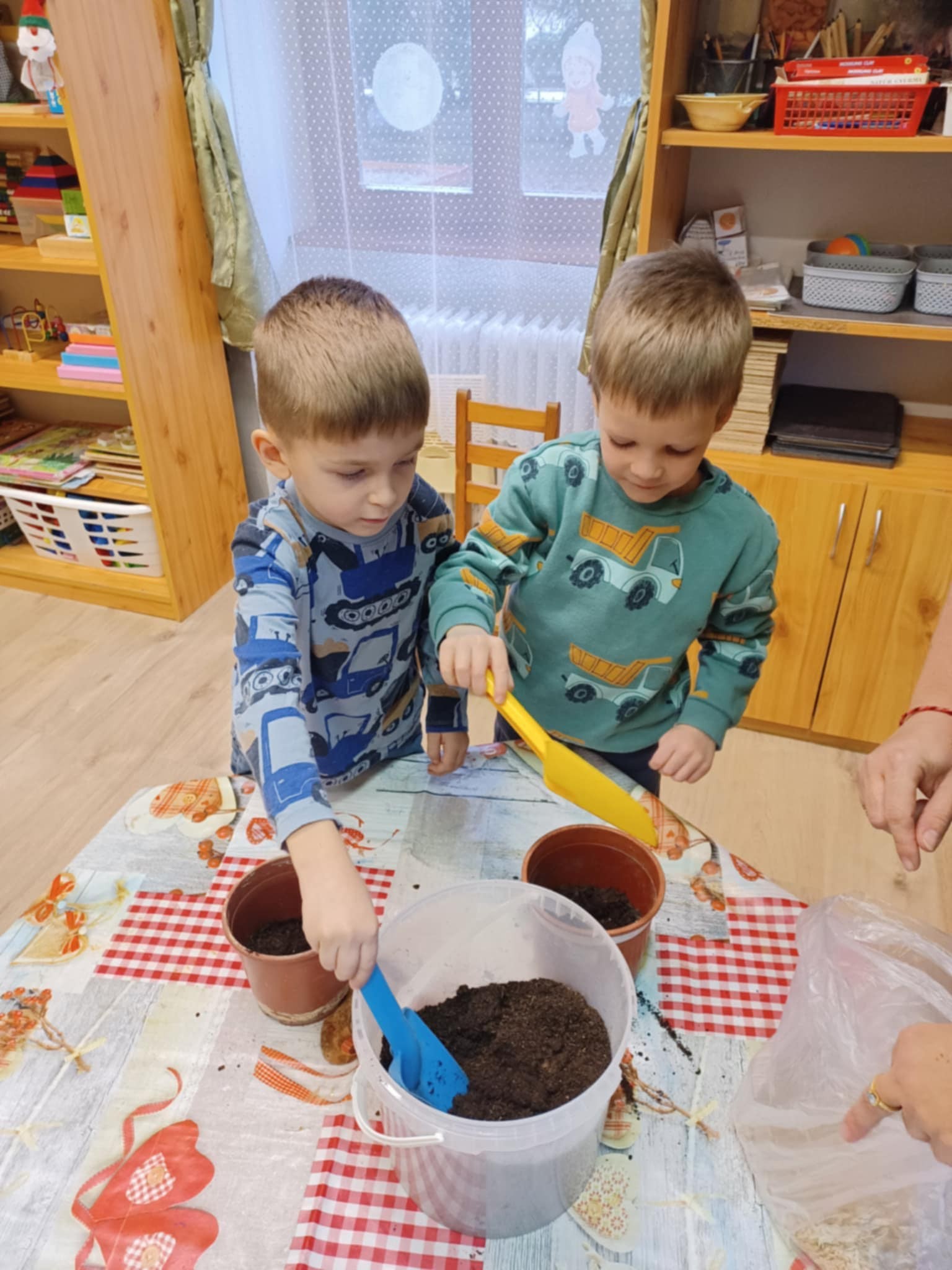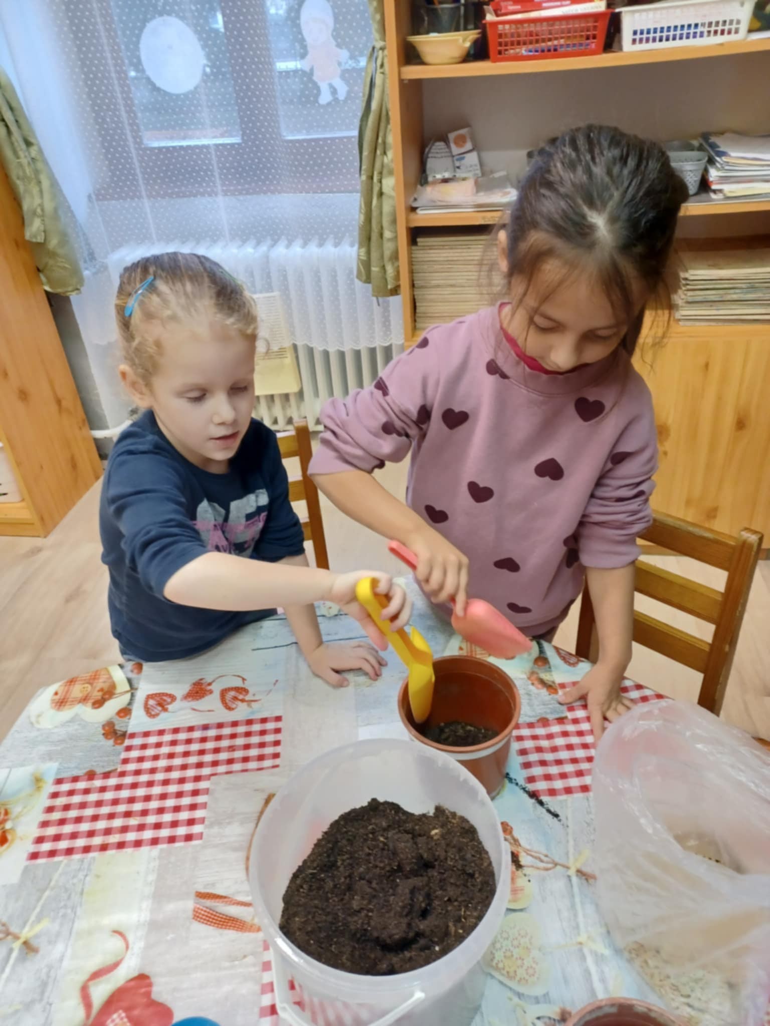 A gyerekek aktívan részt vettek az ültetésben, nagy odafigyeléssel végezték a feladatot, és örömmel beszéltek arról, hogyan fognak gondoskodni a jóságbúzáról.