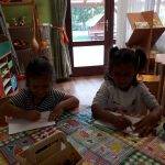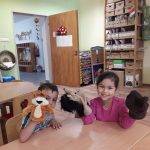 Boldogságóránk szeptemberi témája a hála volt. Kíváncsian vártam, hogy a gyerekek mennyire lesznek befogadóak ebben az új program nyújtotta lehetőségekben. Relaxációs gyakorlatnak a firkálásra esett a választásom. Könnyed, ugyanakkor mókás. Jól sejtettem, hogy szeretni fogják azt, hogy becsukott szemmel kell szabadon firkálgatniuk. Azt tapasztaltam, hogy első körben nehezebben engedik el magukat, ki-ki pislognak a feladatból, nézik, hogy a társuk valóban behunyt szemmel rajzol-e. De többszöri elvégzés során belejöttek és átengedték magukat a relaxációnak. A munkákból látható, hogy maradtak zömmel a papír közepén, nem „mertek” lazább mozgásokat csinálni. Ezt a relaxációs gyakorlatot máskor is beillesztem a mindennapokba és nagyobb papírt fogok biztosítani számukra, hogy érezzék, szabadabban tudnak firkálni. Szeretik a gyerekek a bábozást, így arra gondoltam, hogy a Maci bajban van, mesét választom feldolgozásnak. Először elmeséltem alvásidőben, majd másnap elbáboztam nekik. Természetesen ők is szerették volna a bábokat felvenni a kezükre, így amelyiket választották, azt meg is próbálták eljátszani. Egy felvételt készítettem, de a szerepek körbejártak a gyerekek között. Miután a mesén keresztül érthetővé vált számukra a hála jelentése, ők maguk is elmondták, hogy miért hálásak. Nagyon kedves dolgokat mondtak és megható volt végighallgatni. Pl.