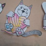 A technika órán papírból cicákat készítettünk. Az alkotómunka során a finommotorikus készségek fejlesztése mellett a türelem és a kitartás is hangsúlyt kapott.