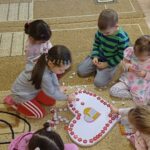 A gyermekek papírból kivágott szíveket díszítenek (rajzolás, festés, matrica, csillámpor stb.).