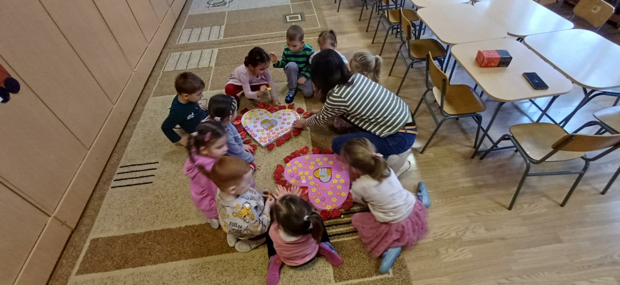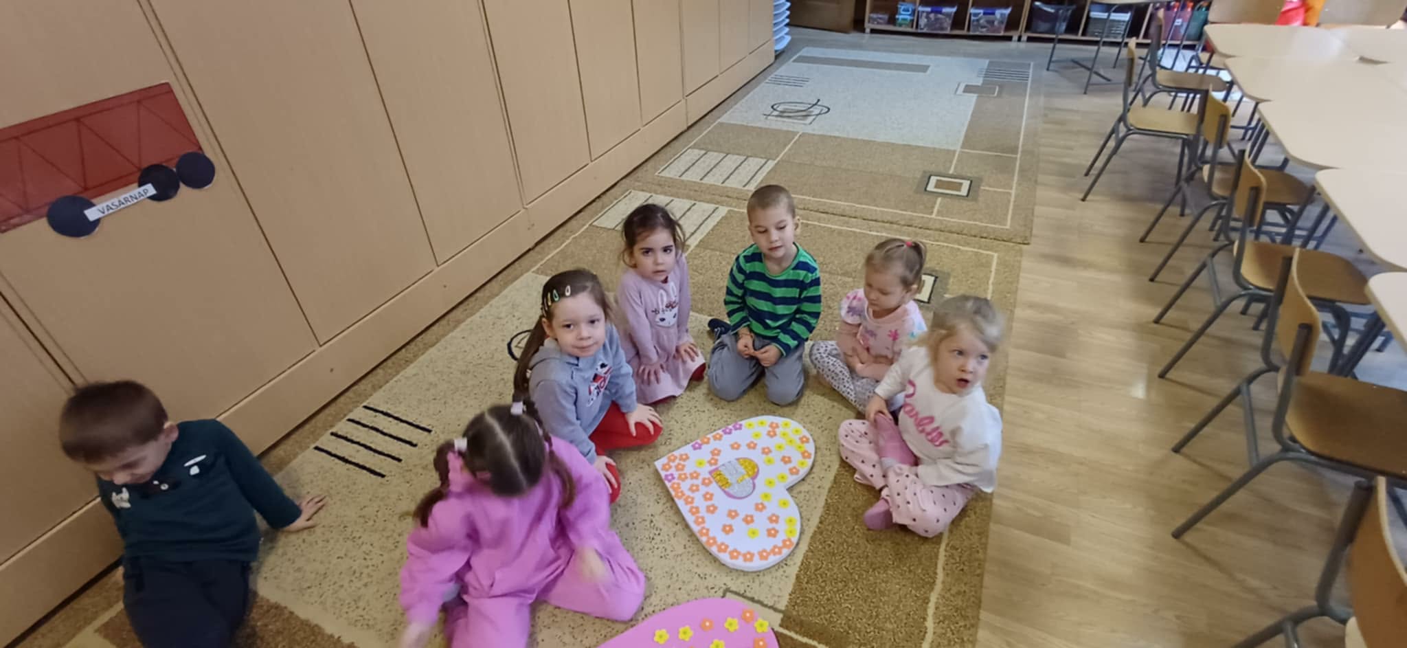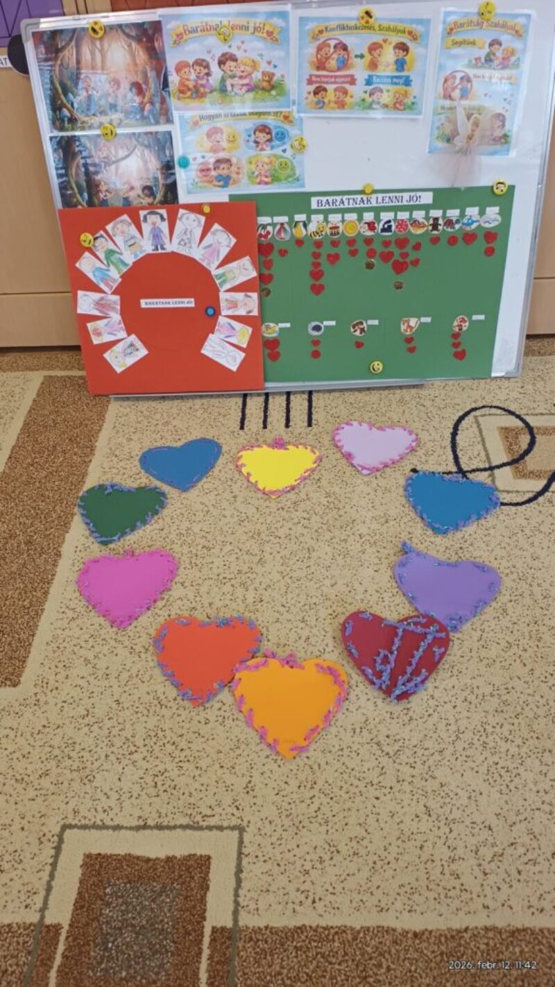A szívek hátoldalára (pedagógus segítségével) rákerült: a megajándékozott gyermek neve,