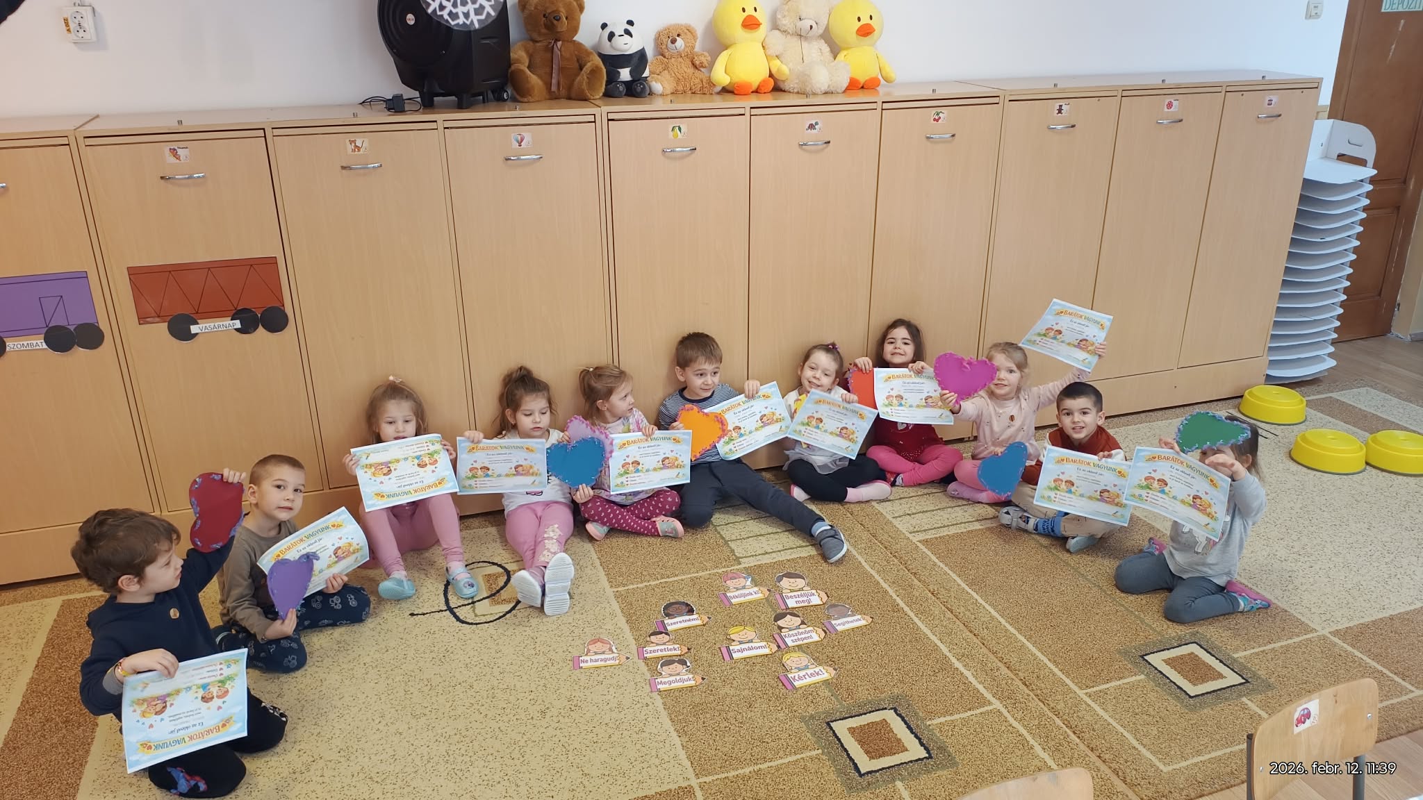 A gyermekek egymásnak adják át a szíveket a nyugodt, meghitt légkörben, mindenki oda teheti a szivet akit választott magának.