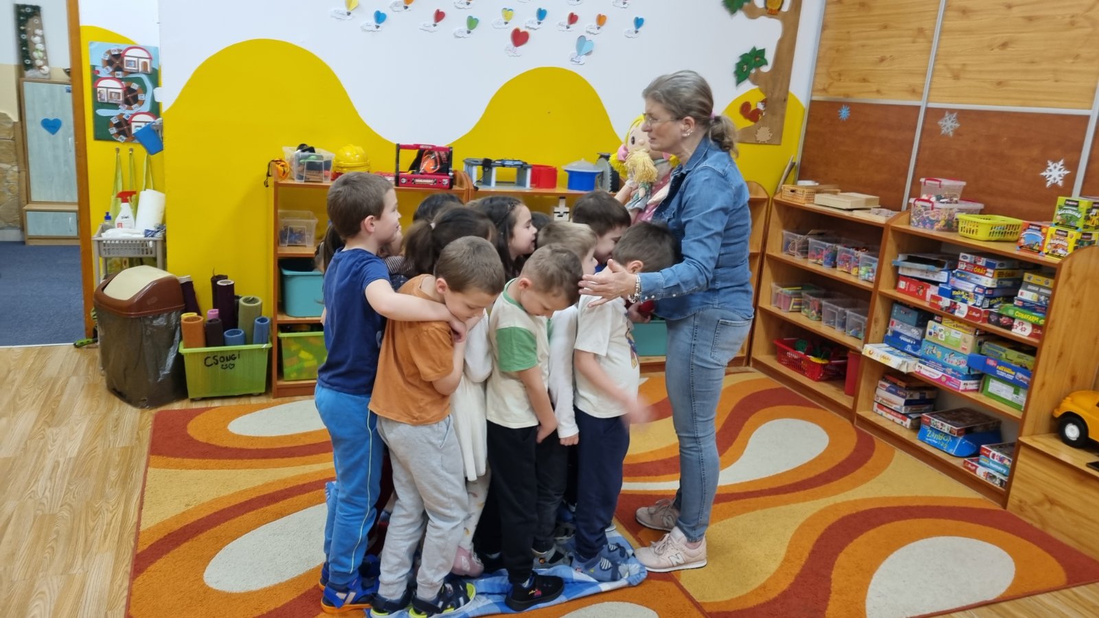 Mit jelent 5-6 éveseknek a célok kitűzése? Nehéz erről beszélni a gyerekeknek, de a hajós játék, jó lehetőség volt arra, hogy egy cél érdekében közösen dolgozzunk. Viharos tengeren megy a hajó, ami egyre kisebb lesz. Vigyáznunk kell egymásra, célunk, hogy senki se essen le a kissebbedő vízi járműről.