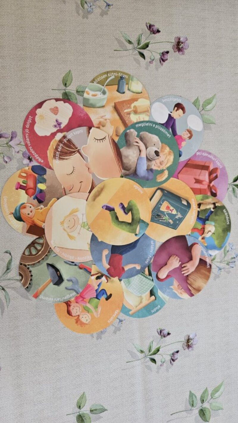 A márciusi boldogságóránk elejét beszélgetéssel indítottuk: először maguktól mondtak példát arra, kinek mi okoz örömöt, hogy szerezhetünk egymásnak örömet a hétköznapok során. Szóba került, hogy a múlt héten a fiúk okoztak nekünk lányoknak örömet a nőnapra hozott virágokkal, illetve mi óvodapedagógusok is tudtunk örömet szerezni a csoportunknak a hét elején, hiszen a gyönyörű napsütésben elsétáltunk a Debreceni Református Kollégiumhoz, ahol egy tartalmas múzeumpedagógiai foglalkozáson vettünk részt. De nagyon szeretnek közösen alkotni is: a héten egy nagy kokárdát festettünk együtt. Ezután a Szívmanó kártyajáték segítségével beszélgettünk arról, ki mikor érez örömöt (pl. ha puszit kap, ugrálhat, játszhat valakivel, megölelhet valakit…). Boldog Dóra mondókája után Boldog Daniella: A katica pöttyei mesét meséltem el nekik.