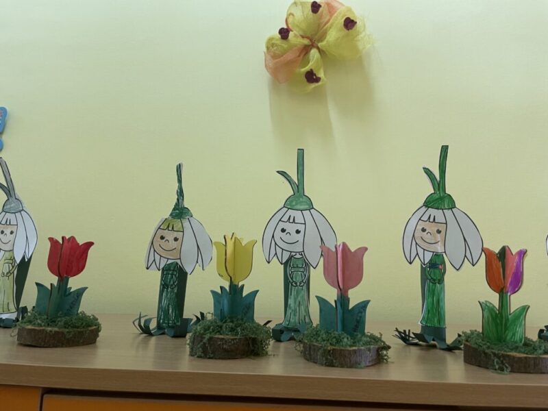 Természetesen az óvodába is készitettünk hóvirágos Tavaszköszöntőket anyukáknak és nagymamáknakis.