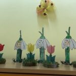 A nőnap alkalmával is apró kis szines tulipánokat festettünk, hiszen fontos, hogy március 8-án megünnepeljük a nőket.Ezen a napon sokat beszélgettünk a családról, az anyukákról, nagymamákról és azt törpöltük ki, hogy minden nap segiteni fogunk nekik valamit, amit aztán következő nap a reggeli beszélgetőkör alkalmával elmesélünk egymásnak.A segitségért mindenki kis szivecskét fog gyűjteni a csoportban lévő nagyobb szivesckéjére, amit majd anyák napján ANYÁnak ajándékozunk.